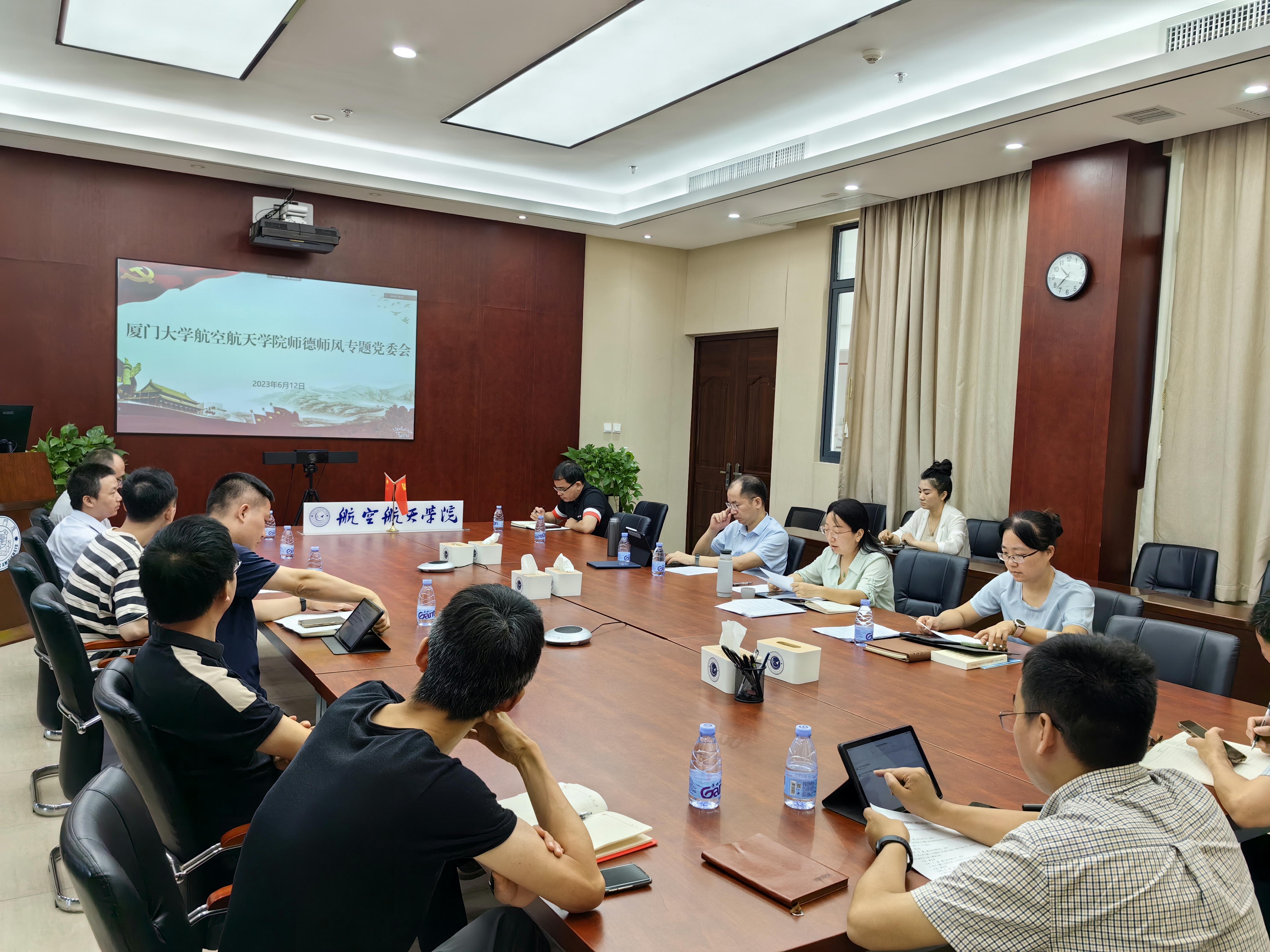 6月12日上午,航空航天学院党委在航空航天大楼501会议室召开师德师风专题工作会,以深化全院师德师风建设,谋划开展师德集中学习教育,推进学习贯彻习近平新时代中国特色社会主义思想主题教育走深走实。学院全体党委委员,教工党支部书记、委员参加会议。会议由学院党委书记廖志丹主持。