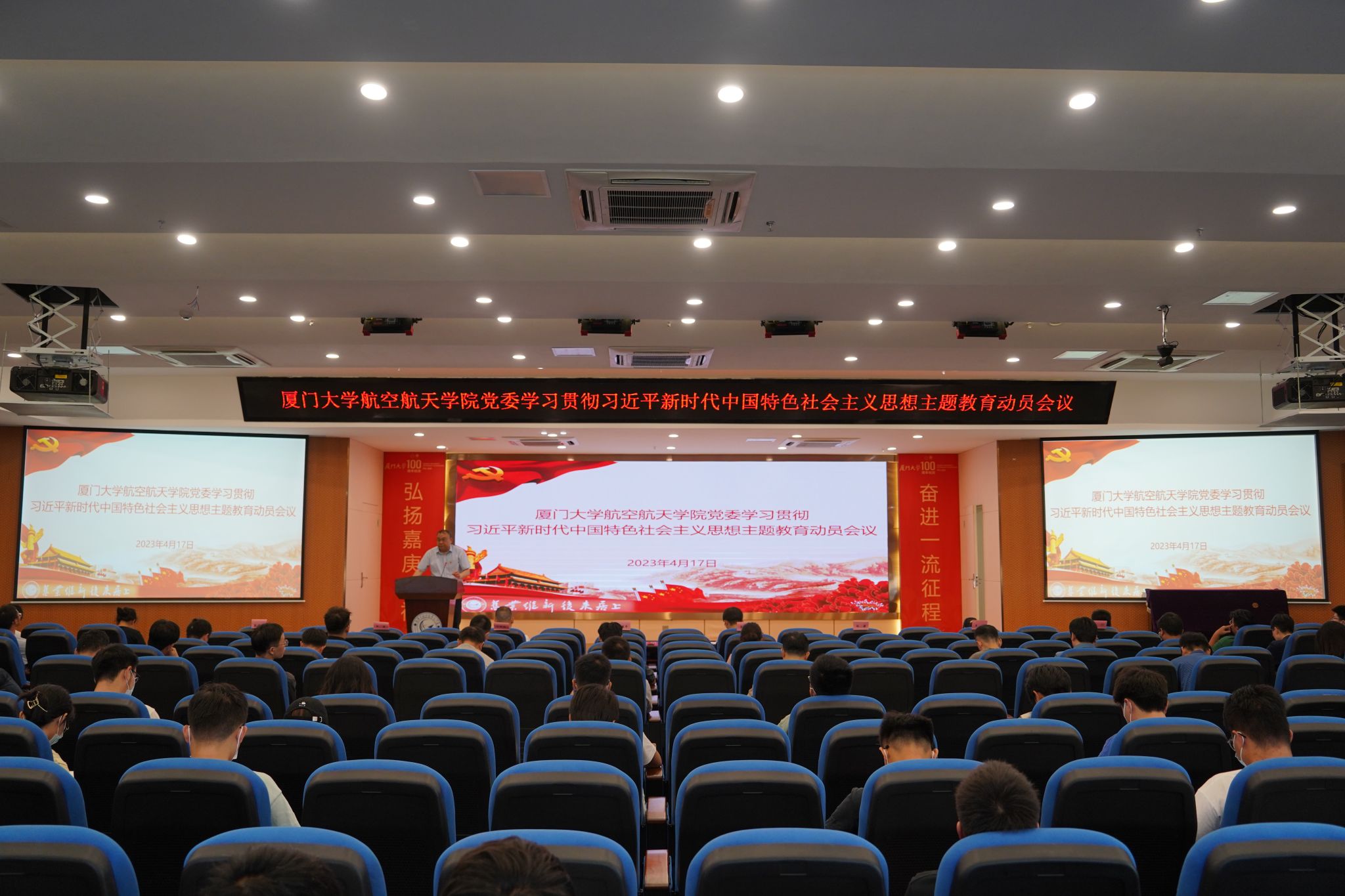 2023年4月17日下午,航空航天学院党委在航空航天大楼报告厅召开学习贯彻习近平新时代中国特色社会主义思想主题教育动员会议。航空航天学院党委书记王康平主持会议,并对航空航天学院党委开展学习贯彻习近平新时代中国特色社会主义思想主题教育进行动员部署,厦门大学第七巡回指导组副组长,校学生工作部(处)副部(处)长、翔安校区学生办主任高斌到会指导。参加本次会议的还有航空航天学院、萨本栋微米纳米科学技术研究院党员处级领导干部、学院党委委员,全体师生党支部书记、支委,党委组织员、党务秘书,师生代表等。