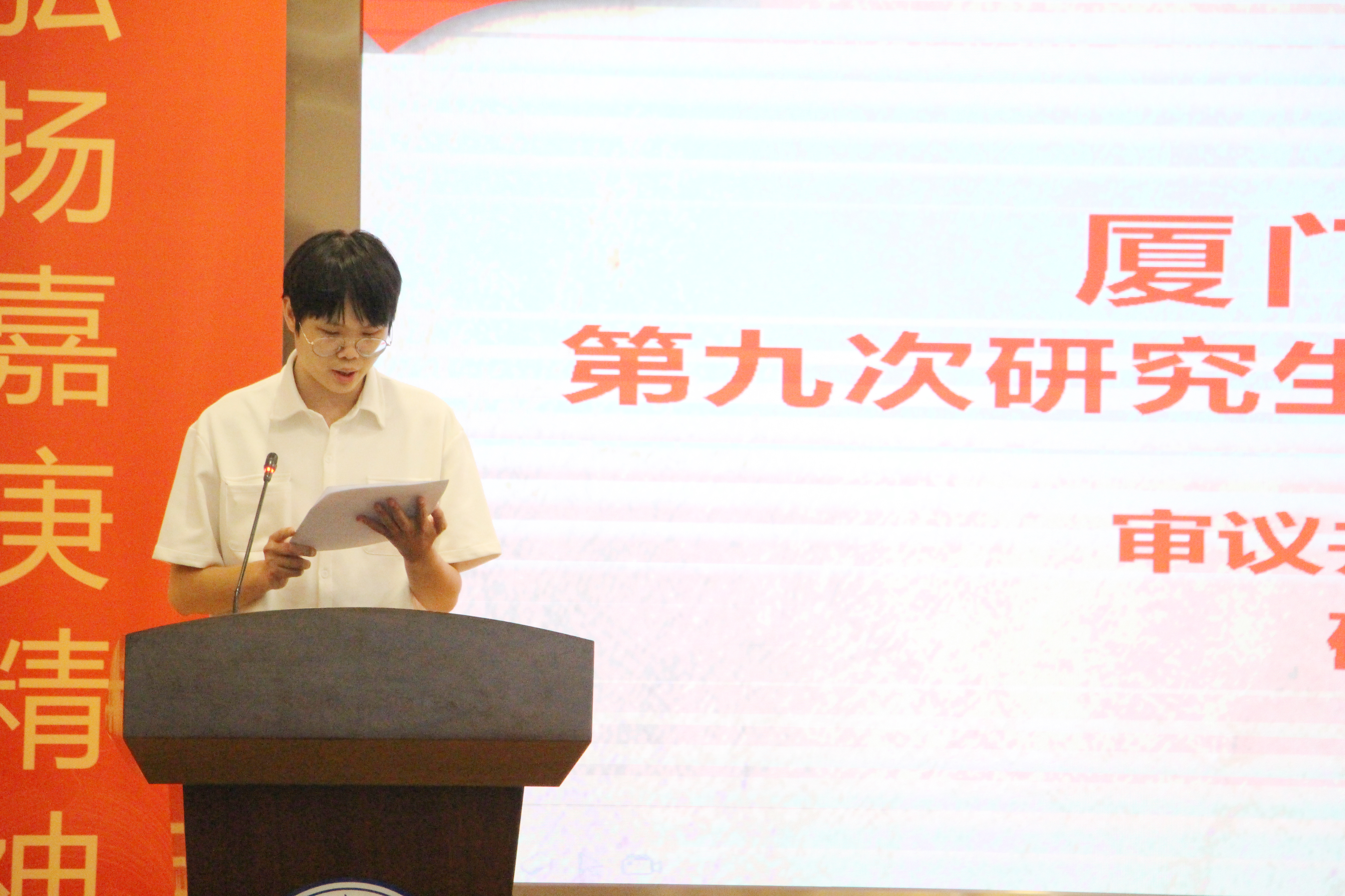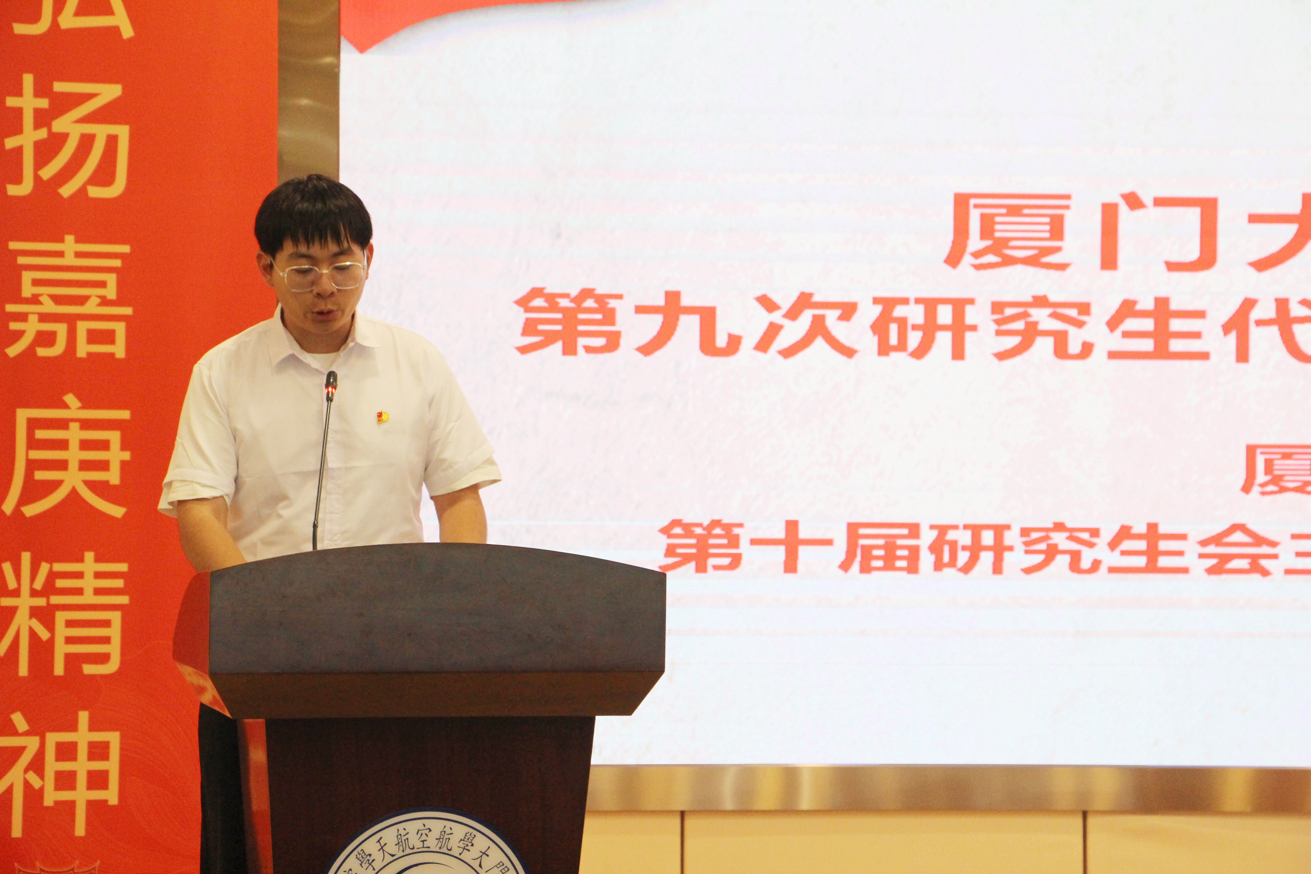 首先,大会进行第一阶段预备会议。主持人宣读大会注意事项及厦门大学研究生会《关于同意召开航空航天学院第九次研究生代表大会的批复》;会议审议并通过了大会的筹备工作报告和代表资格审查报告。