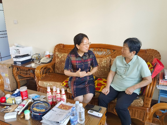 廖志丹一行先后走访了近些年“光荣在党50年”纪念章获得者杨玉钦、黄淑兰、卢茂狮、杨鸿坤、蔡建立,退伍老兵黄太平、独居困难老人骆镇华等,悉心询问他们的生活状况,详细了解他们的身体状况,倾听他们的心声,鼓励他们保持乐观积极的生活态度,保重身体。在与他们促膝交谈中,听取他们对学院改革发展建设中的建议和意见,希望老党员继续发光发热支持学院各项工作。