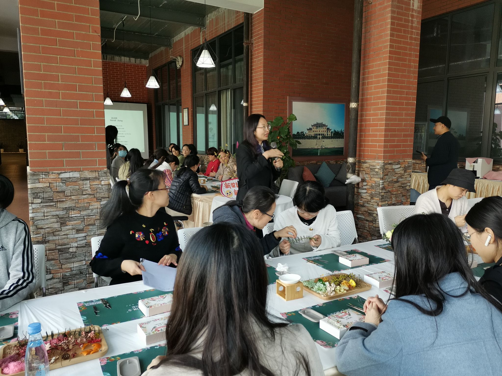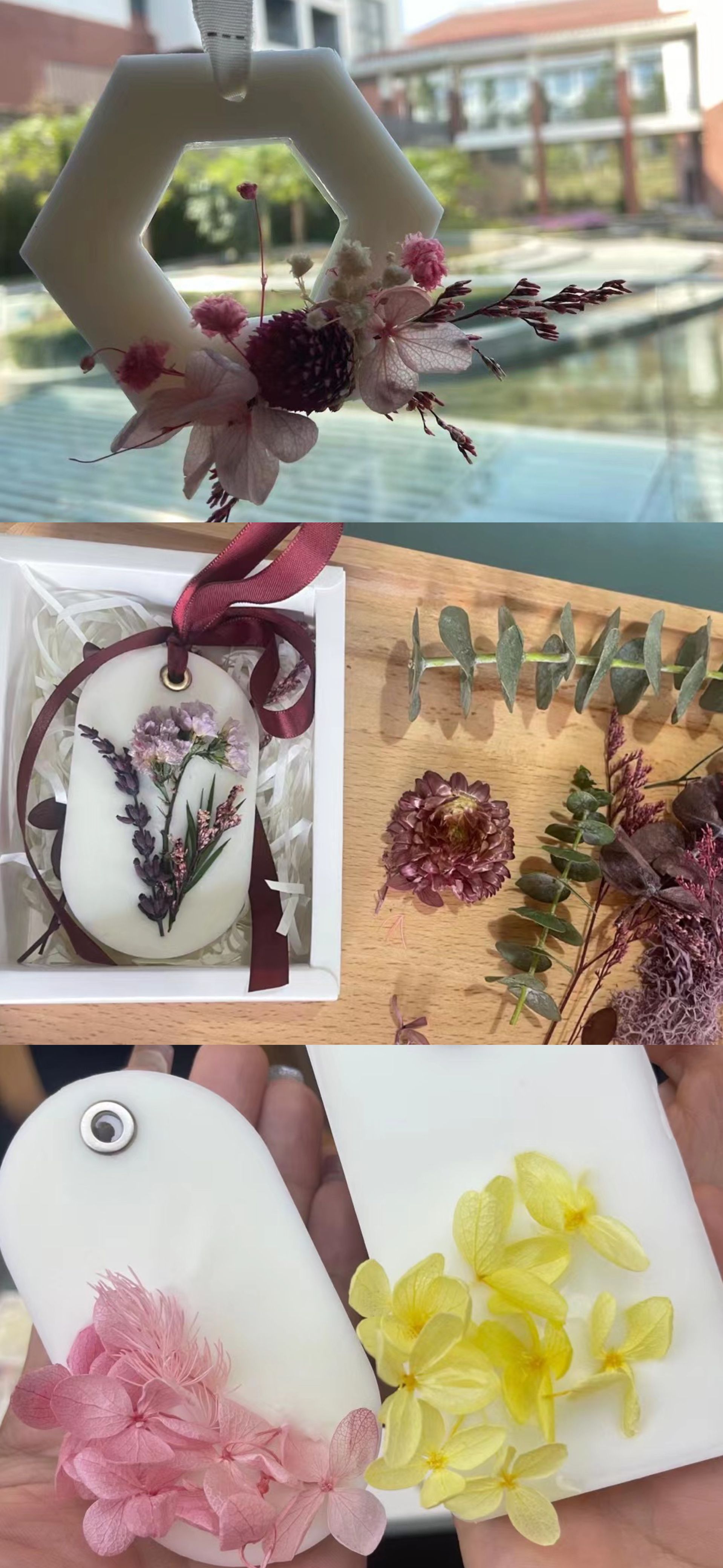 在活动中,老师们先学习了精油的相关知识,随后,女教工们将自己对生活的祝福寄于干花之上,用自己的妙手描绘出了一个个美好愿景。老师们在活动中不断感受美、欣赏美、创造美,并与自己的作品合影留念,在欢声笑语中愉快完成精油散香片的制作。