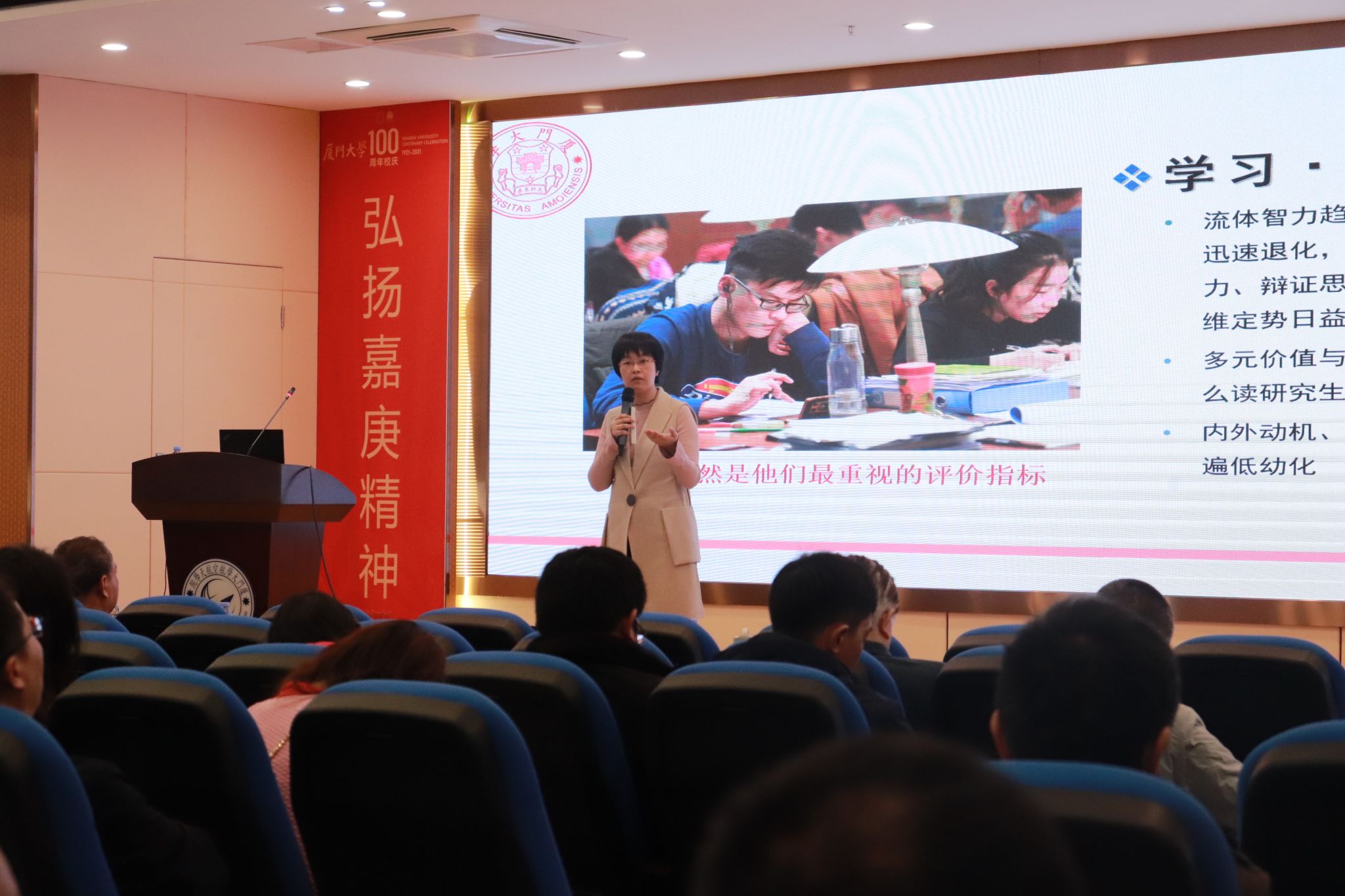 师德师风,爱绽光彩。3月6日下午,航空航天学院在院楼报告厅召开《研究生心理问题与帮扶对策》专题报告,学院组织女教师积极参与。在报告会上,学校心理咨询与教育中心主任赖丹凤副教授帮助老师们梳理了研究生群体的心理健康状况以及可能存在的问题,并同时提出了解决问题的思路和方法,更好地帮助老师从心理关注的层面教育引导学生,积极促进学生以积极健康的心理状态投入科研与生活。学院女教工都表示获益匪浅,对于与学生相处的模式和定位都有了新的思考。