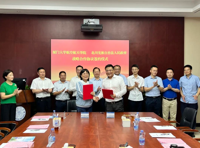 6月13日下午,北川羌族自治县考察团一行至厦门大学航空航天学院调研交流。北川羌族自治县委书记李昊天,县委副书记唐扬,县政法委书记邓勇,县委常委、副县长刘大先,北川经开区管委会主任母贤斌,航空航天学院党委书记王康平,副院长王颖,飞行器系副主任(主持工作)朱呈祥、飞行器系副主任王晓光等出席活动。