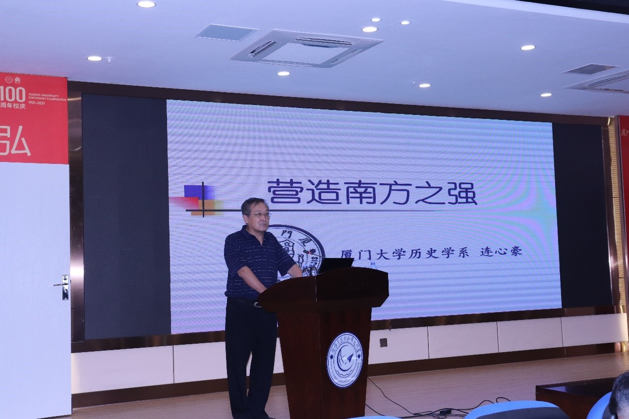 为将总结厦门大学百年办学历程、开启新百年发展征程与党史学习教育结合起来,通过校史、院史学习党史,努力将学习成果转化为奋进前行的动力源泉,为开启百年新“航”程汲取力量,2021年6月10日下午,航空航天学院第3期党委党校“旗帜工程·党员学堂”邀请人文学院历史系连心豪教授为师生党员做题为《营造南方之强》的报告,活动由航空航天学院党委副书记张晴主持。