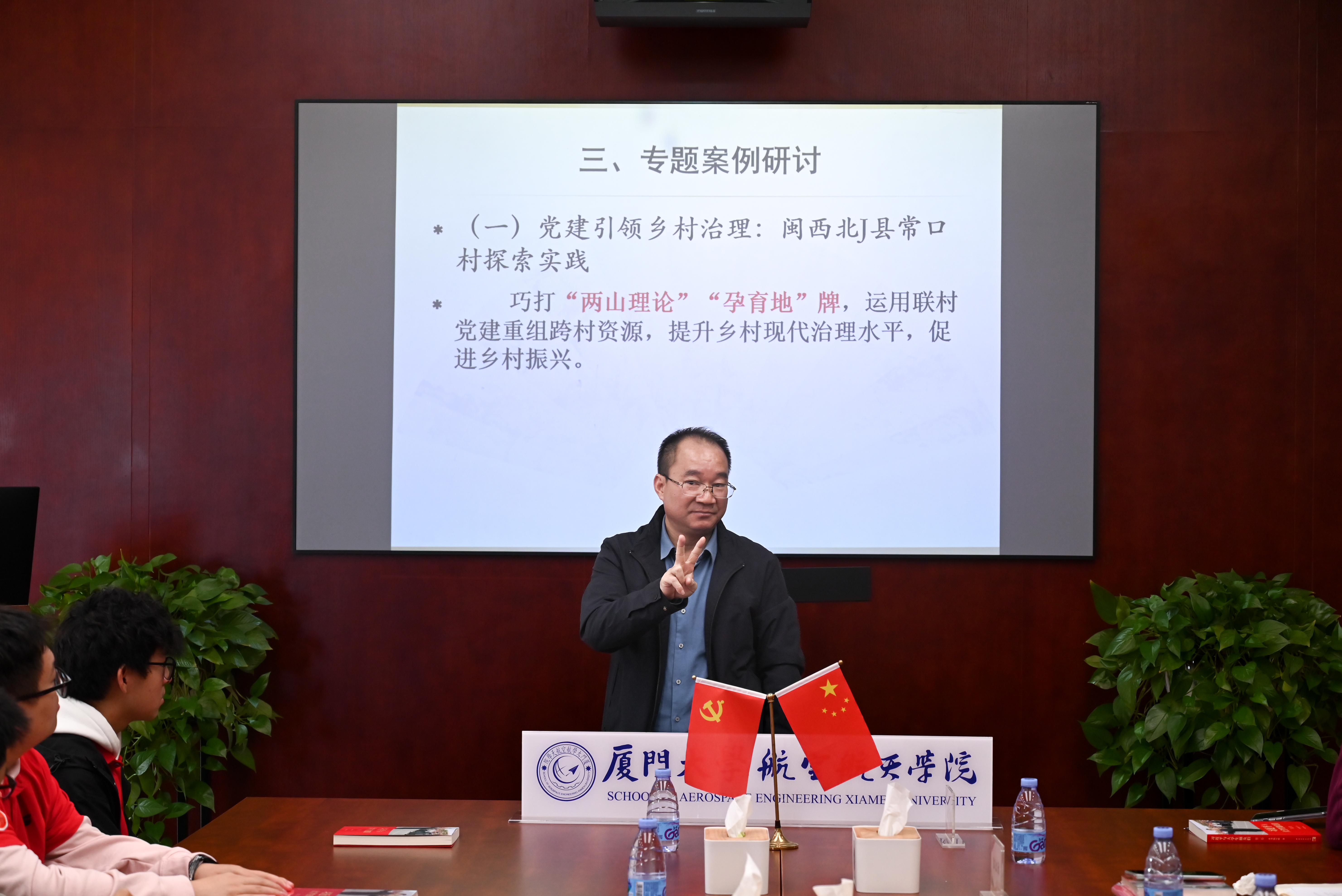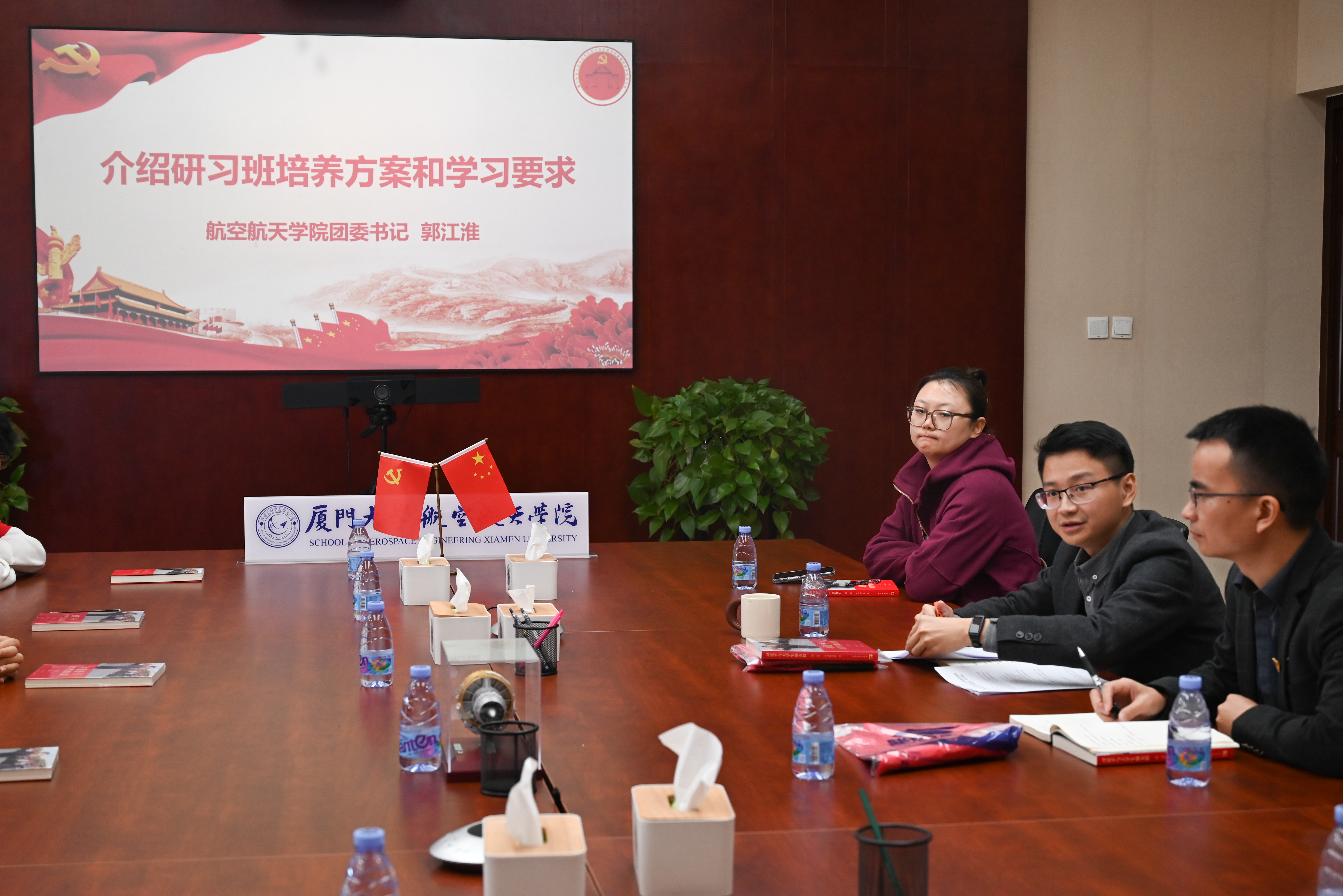 为深入学习贯彻习近平新时代中国特色社会主义思想,引导青年学子深刻领会把握习近平总书记关于党的建设的重要思想的科学体系、丰富内涵、实践要求, 切实把 党的创新理论 转化为坚定理想、武装头脑、指导实践的强大力量 ,奋力书写为中国式现代化挺膺担当的青春篇章 。航空航天学院联合信息学院举办厦门大学习近平总书记关于党的建设的重要思想学生研习班。 11月30日上午,研习班在航空航天学院开启主题课程第一课,课程由研习班班主任、航空航天学院党委副书记王寒主持。