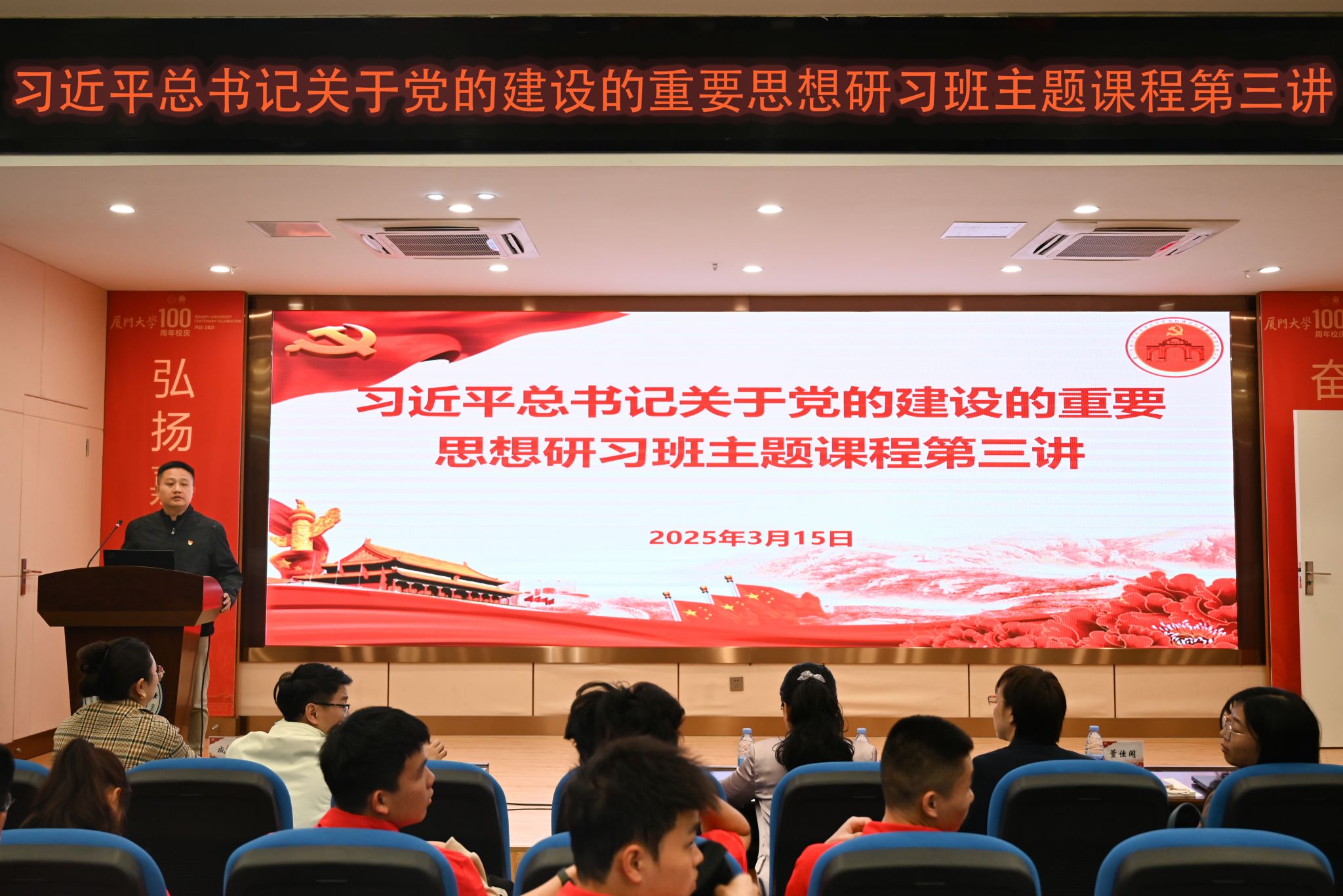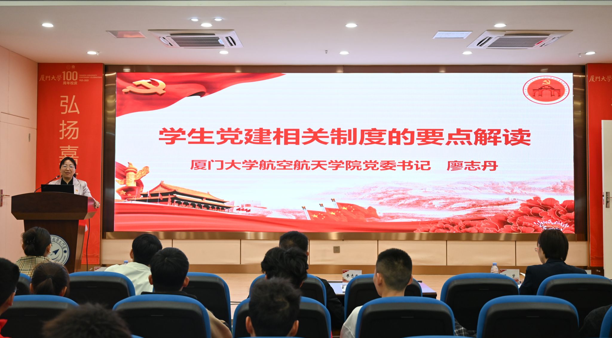 为深入贯彻落实新时代党的建设总要求,进一步加强青年学生的党性修养,引导他们 学习 领会学生党建工作的核心要义和实践路径,切实将党的理论融入思想、指导行动,为青年学生成长 成才 筑牢坚实根基,3月15日上午,厦门大学习近平总书记关于党的建设的重要思想学生研习班主题课程第三讲在航空航天学院547报告厅举行。本次课程由航空航天学院党委书记廖志丹主讲,研习班班主任、航空航天学院党委副书记王寒主持 课程 。