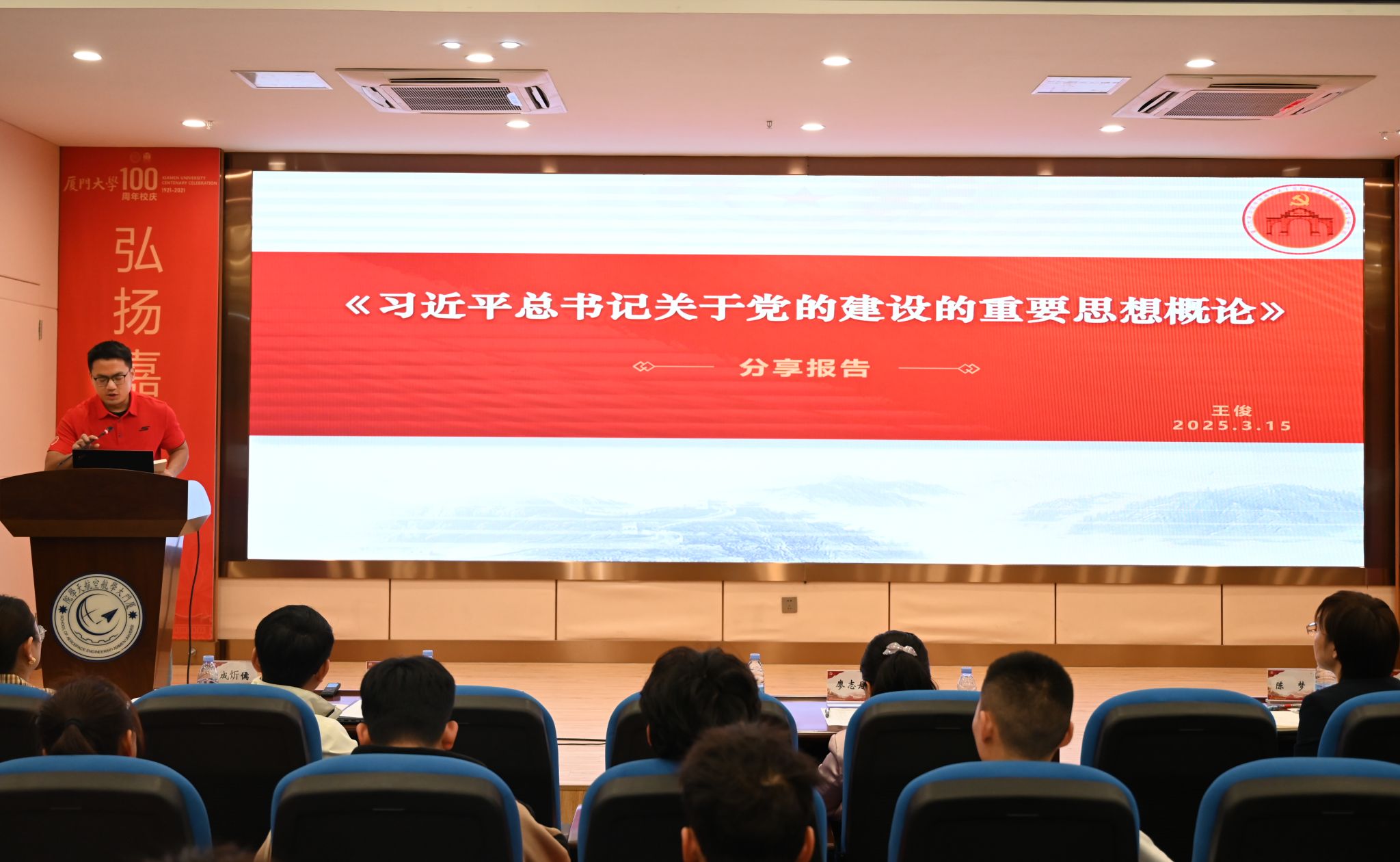 紧接着,研习班师生共同观看学习了习近平总书记关于党的建设的重要思想微视频“十三讲”,进一步加深了对党的基础理论知识的理解。在交流分享环节,研习班学生代表王俊分享了学习《习近平总书记关于党的建设的重要思想概论》的心得体会,从理论层面带来了新的思考与启发。随后,刘艺颖结合参加漳州东山“追寻领袖足迹”系列主题社会实践的经历,介绍了习近平总书记关于党的建设的重要思想在漳州市东山县的具体落实与应用,让师生们切实感受到党建理论在基层实践中的强大力量。
