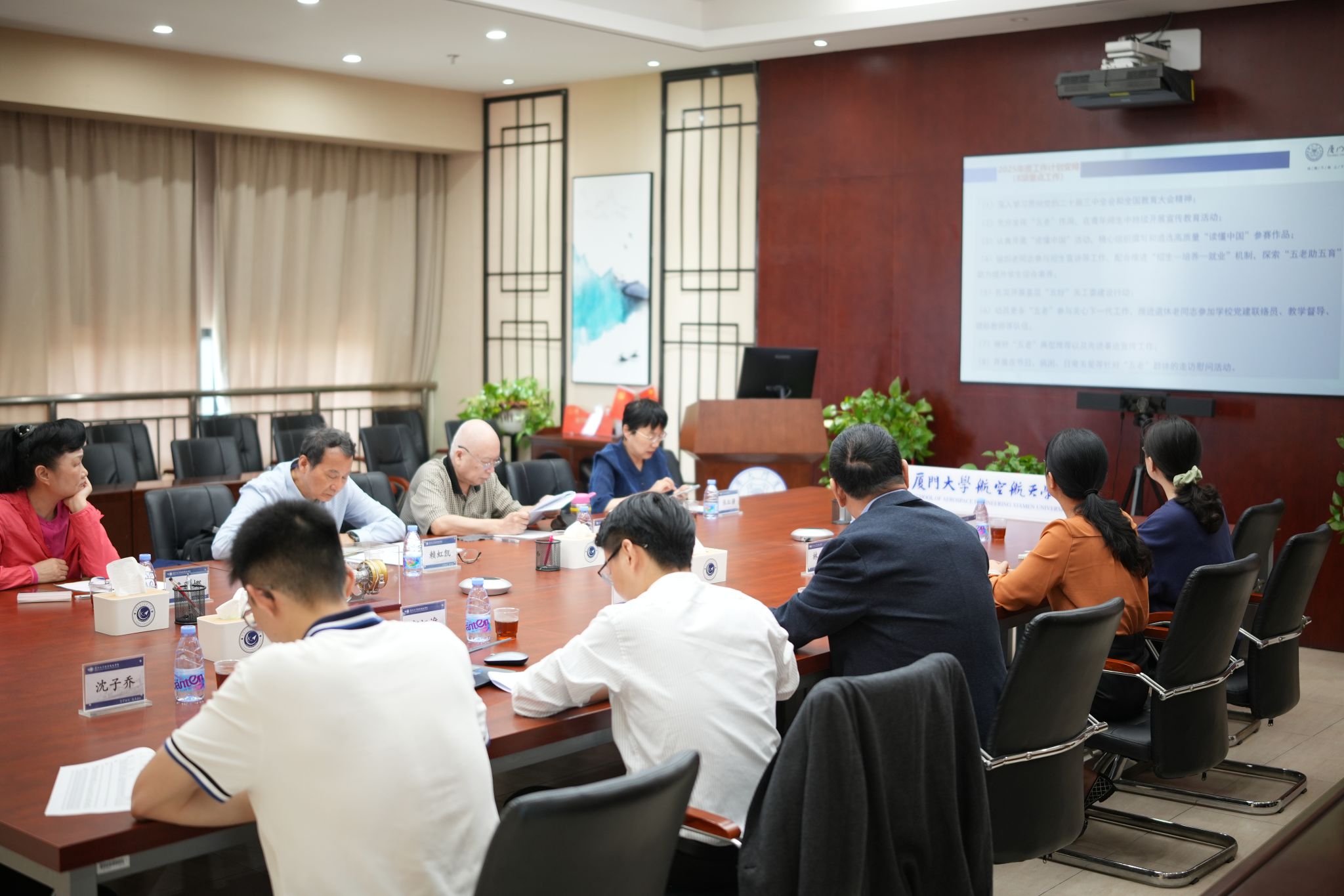 4月15日 下午 , 厦门大学关工委常务副主任赖虹凯,副主任邵鹏飞、侯莲娜,秘书张红疆一行莅临航空航天学院,深入 调研指导学院关工委工作。 学院关工委常务副主任洪永强,党委副书记林蔚,团委书记兼关工委秘书郭江淮,以及关工委学生委员张思韫、沈子乔参加此次调研交流。