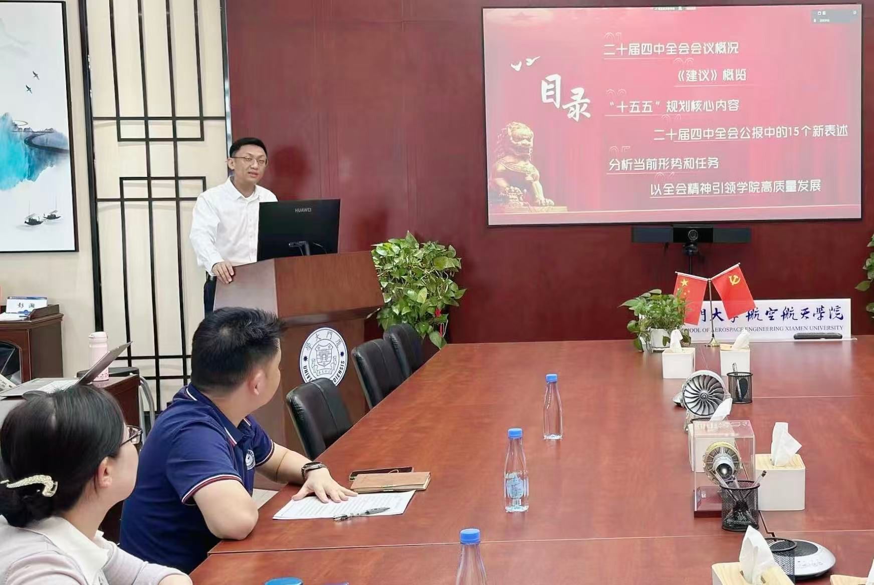 围绕如何将全会精神转化为学院发展实践,袁国柱提出具体落实要求:一要坚持党建引领,筑牢发展根基,将党的全面领导贯穿办学治院全过程,确保学院发展方向与党中央决策部署同频共振;二要聚焦学科建设,提升创新能力,主动对接航天强国、制造强国等国家重大需求,优化学科布局和科研攻关方向;三要深化人才培养改革,培育时代新人,以改革创新为动力,在人才培养、科学研究、社会服务等方面实现质的提升;四要扩大开放合作,服务国家战略,在协同建好中马高研院等方面积极探索。