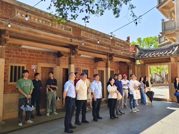 随后党支部一行前往梧林古村落。这里不仅有南洋与闽南风格结合的古建筑,还蕴含着深厚的历史文化底蕴,是典型而完备的闽南传统村落,以及海外华侨家国情怀的例证,有“华侨建筑博物馆”的雅称。在讲解员的引导下,师生党员参观了朝东楼、德越宅、五层厝等各具特色的古建筑,对梧林华侨的爱国情怀和艰苦奋斗史有了更深的感悟。