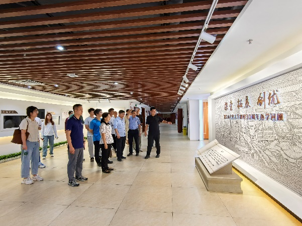 随后,师生党支部在傅安贤的带领下走进晋江市老年大学。该校建成了首条沉浸式晋江地方党史文化长廊,该长廊以时间为轴,选取晋江地方党史中14个具有代表性的重要事件和重大历史节点,串联起百年晋江地方党史的光辉历程。自1991年创办以来,晋江市老年大学已经走过了30多年的发展历程,从最初的党校两间校舍起步,发展成为具有全国示范意义的区域性老年教育基地。晋江市老年大学向大家展现了老年教育的活力与创新,激励了师生党员关注老年群体,推动终身学习,共同构建和谐社会。