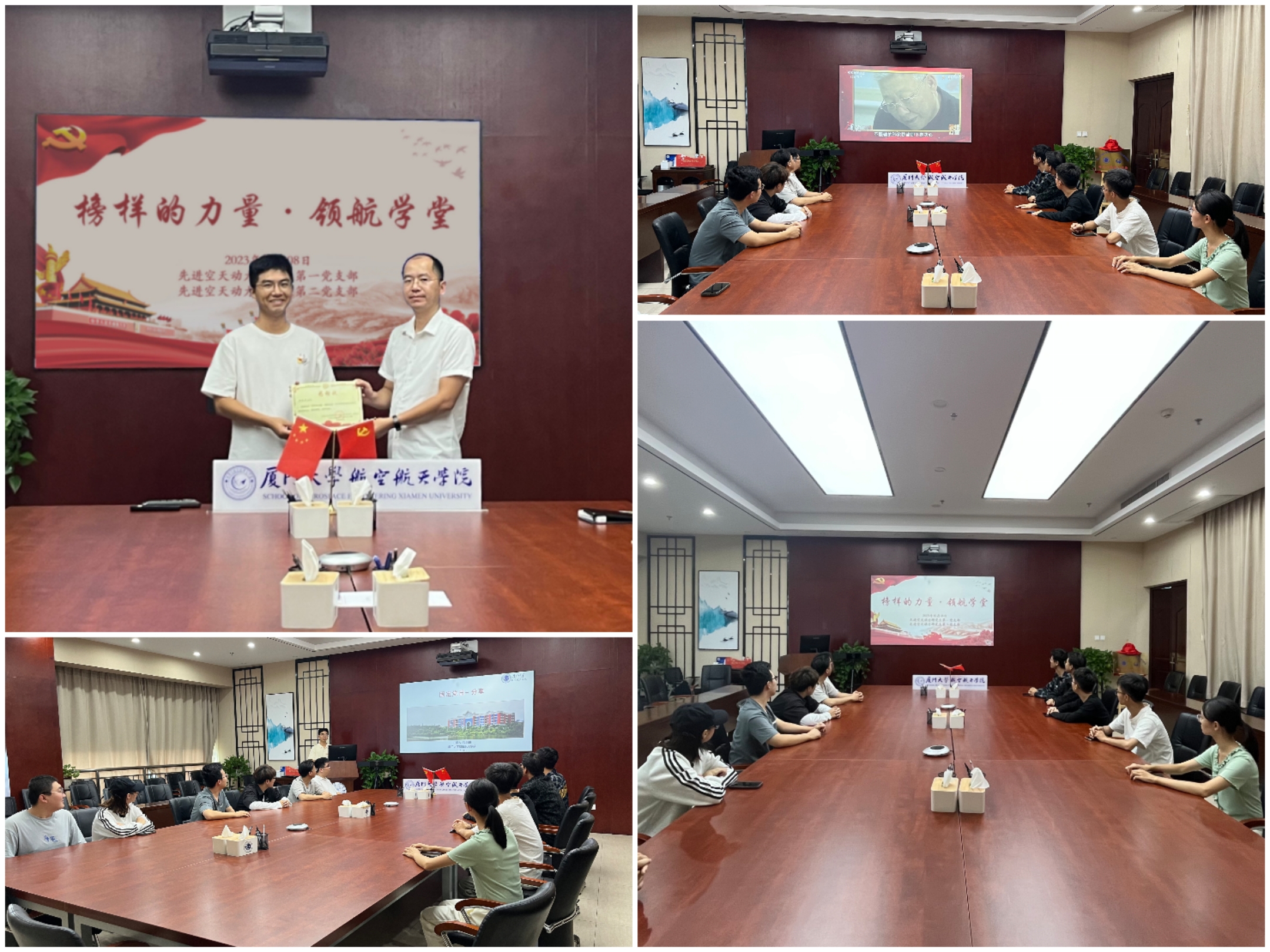 2023年10月8日,航空航天学院先进空天动力研究生第一党支部和先进空天动力研究生第二党支部在院楼501会议室举办了 “榜样的力量·领航学堂” “固定党日+”活动。支部全体党员深入学习、互动分享榜样力量,学院常务副院长、党委副书记,党支部红色导师尤延铖教授到会指导。