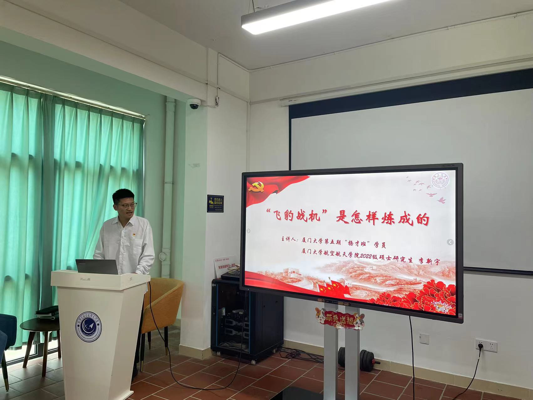 宣讲结束后,王寒作点评分享。他以近期国际时事热点为切入点,鼓励同学们要胸怀“空天报国”志向,以陈一坚院士等老一辈厦大航空人“报华夏,慰先祖”的精神为引领,学思践悟强担当,将日常学习、科研以及学生工作落细落实,为国家强盛、民族复兴筑牢基础。