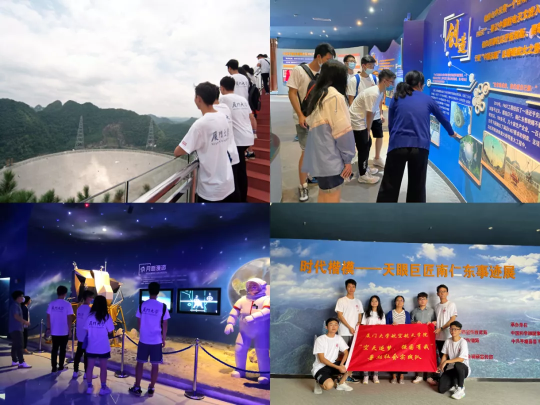 为切身感受中国航天科技的巨大成就、体会中国天眼精神,“空天逐梦”实践队来到贵州省平塘天文小镇中国天眼科普基地,近距离参观天眼核心区,领略宏伟壮观的FAST。队员们参观南仁东事迹馆,回顾南仁东先生为国家空天事业奋斗的一生,再从南仁东先生的视角观察FAST,了解中国天眼从选址到落成所经历的艰辛坎坷,体会人民科学家为事业奉献人生的伟大情怀。