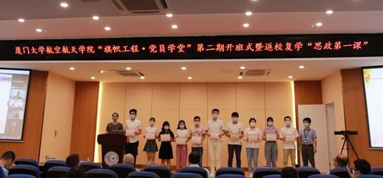 2020年6月1日,航空航天学院“旗帜工程•党员学堂”第二期开班式暨返校复学“思政第一课”开展。校基层党建联络员、附属翔安医院原党委书记邵鹏飞,校党委第一巡察组组长、校党委委员、机关党委书记梁卫中,校党委第一巡察组成员、经济学院党委副书记杜海林,校党委第一巡察组成员、机关党委秘书兼联络员黄旻敏,校党委党的建设工作办公室主任、组织部副部长、教师工作部副部长廖志丹,校党委党校副校长何丽新,学生工作部(处)副部(处)长、翔安校区学生办公室主任张清榕,航空航天学院党委书记王康平,学院党委委员、常务副院长尤延铖,学院党委副书记张晴等出席了开班式,活动由学院党委副书记林蔚主持。