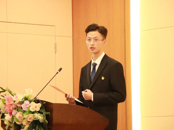 胡骐麟同学以介绍共产党宣言开篇,以亲身经历阐述了自己的责任和使命,要为航天强国四个字能稳稳立在神州大地上奋斗!最后呼吁我们大学生应该担起责任,为实现中华民族伟大复兴而奋斗!