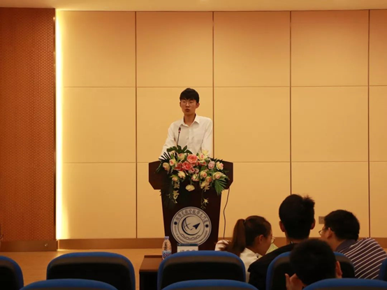 张佳杰同学从自己的初心和使命切入,从中华人民共和国成立70周年的盛况讲到了核武器研制的艰辛过程。他号召我们不忘科研初心,牢记报国使命,身为青年厦大学子,要发扬王亚南校长和陈景润教授为代表的科学精神,为祖国的繁荣昌盛贡献自己的热血与智慧。
