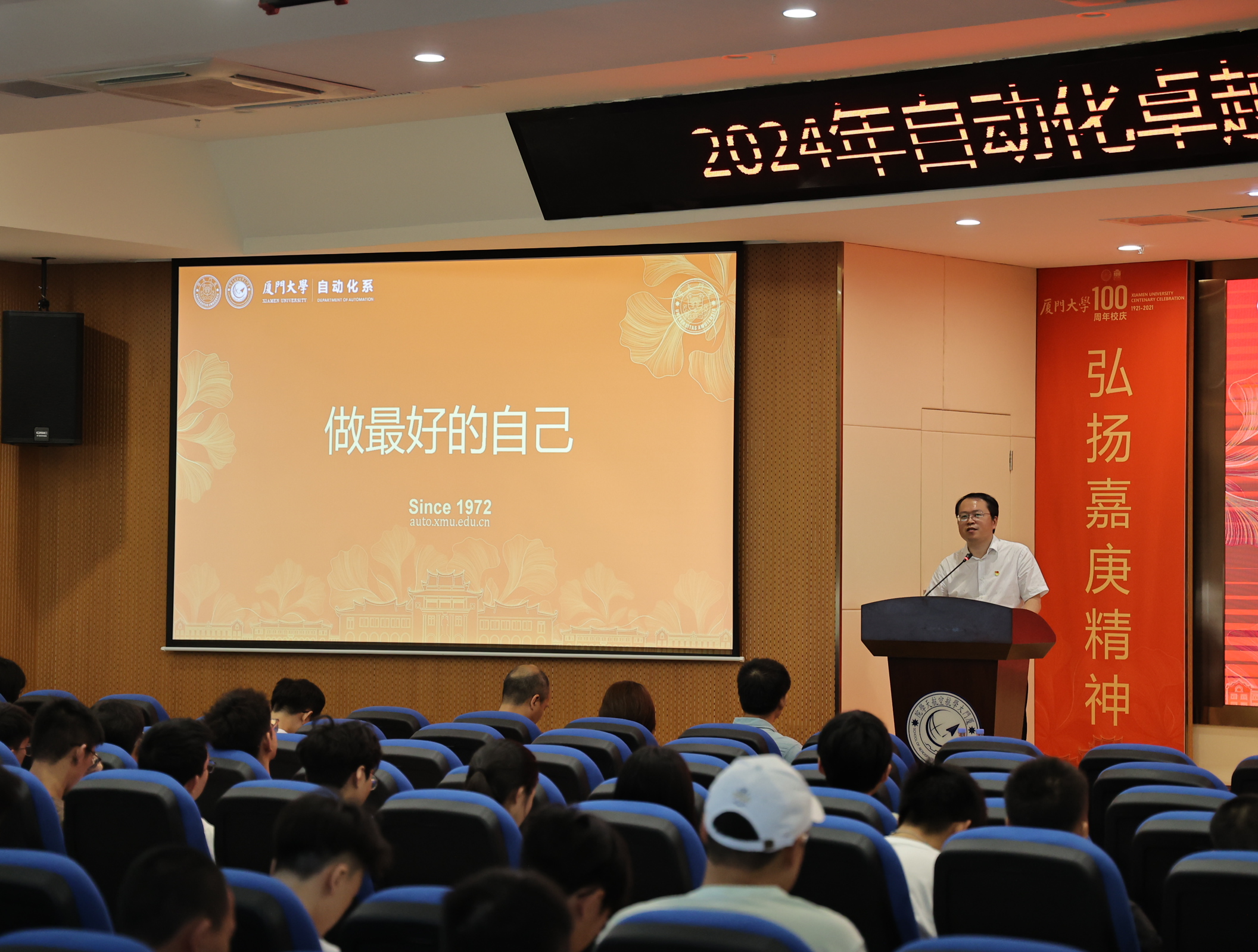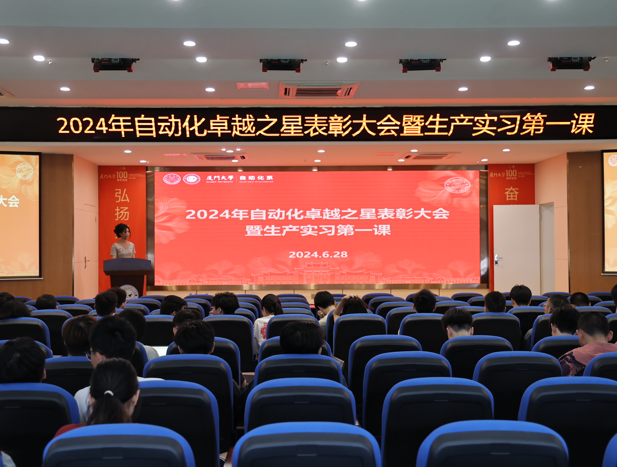 6月28日上午,厦门大学航空航天学院自动化系在学院报告厅举行“2024年自动化卓越之星表彰大会暨生产实习第一课”活动。学院党委书记廖志丹、自动化系系主任洪文兴、自动化系专任教师、自动化系2024届毕业生代表以及2021级全体本科生参加活动。