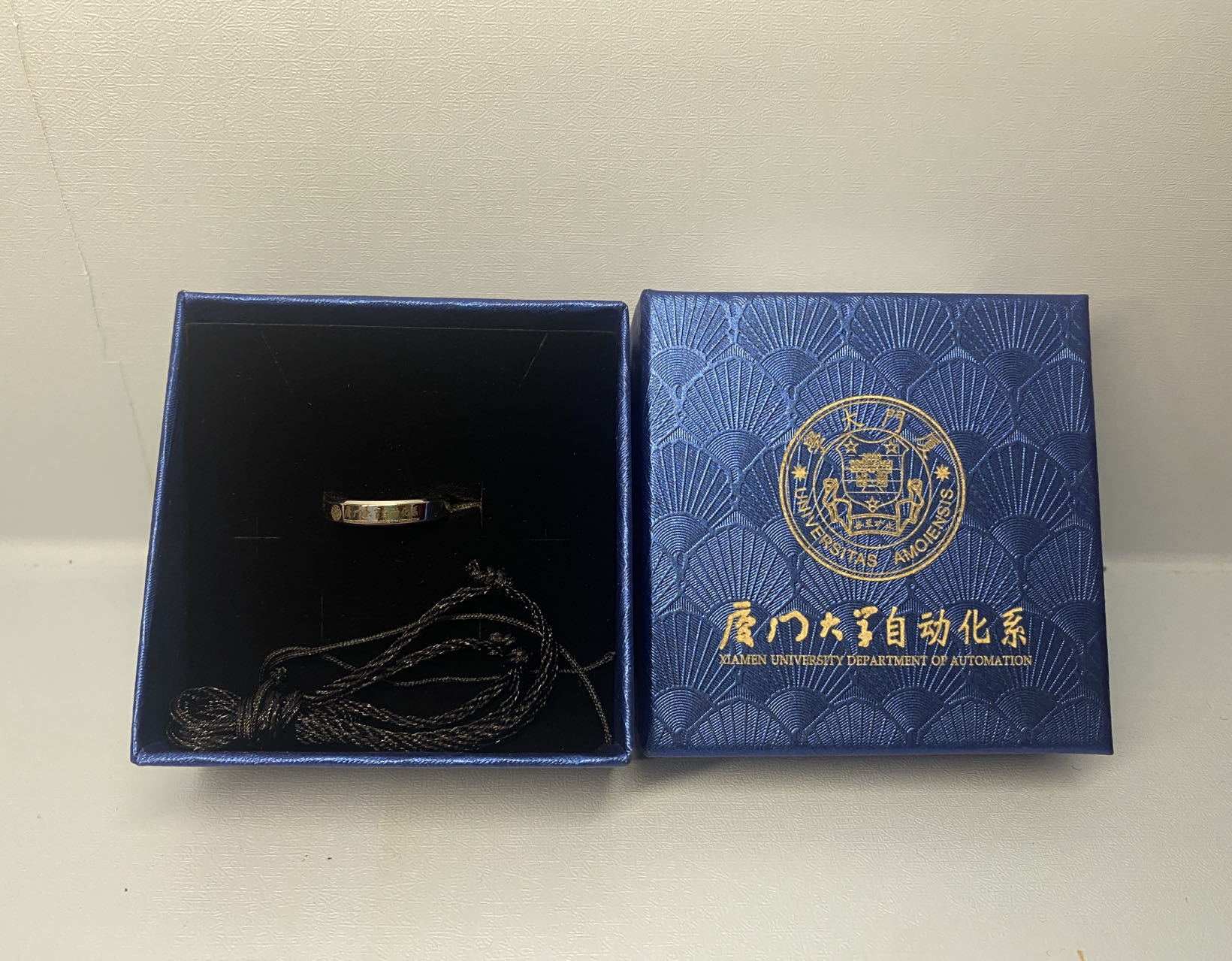 此外,作为“基金”的保留项目,每位毕业生也获赠了一枚刻有厦门大学校徽、航空航天学院院徽、自动化系名称、学生姓名及学号的专属戒指,留下了2024届毕业生独家记忆。