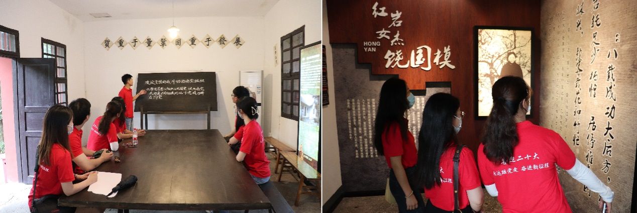 接着实践队一行走进饶国模故居,感受一代红岩女杰的爱国之心、报国之志。1939年春,抗战烽烟正浓,实业救国的饶国模义无反顾地向处于危难之中的中国共产党伸出援手,慷慨允诺中共中央南方局在其红岩大有农场内建立八路军办事处,并多次竭诚相助。重庆谈判期间,毛泽东在红岩宴请她,感谢她对中央的鼎力相助。