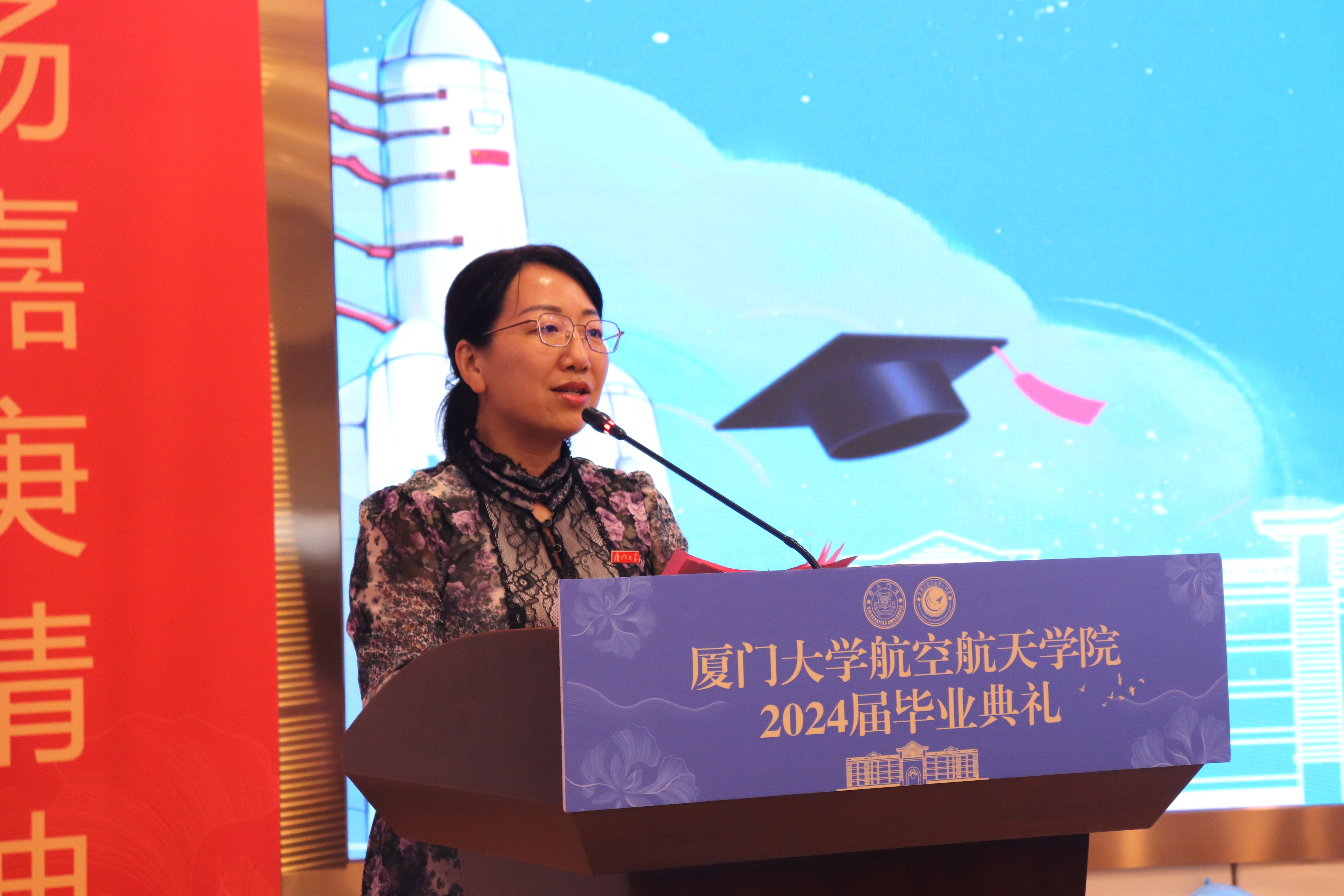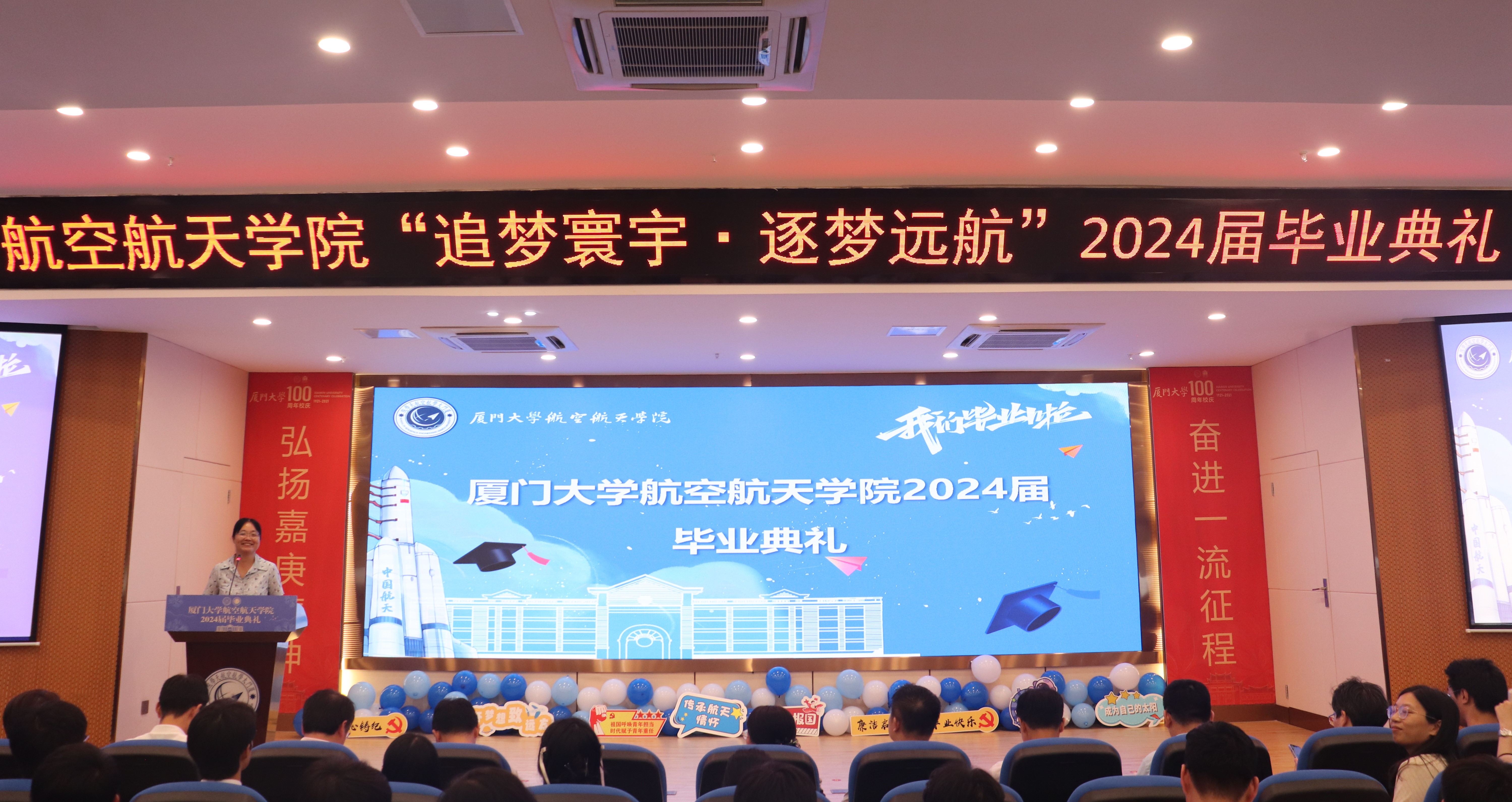 6月19日下午,厦门大学航空航天学院“追梦寰宇·逐梦远航”2024届毕业典礼在学院547报告厅隆重举行。学院党政领导干部、教师代表、工程技术人员代表、党政管理和后勤服务人员代表、2024届全体毕业生和部分学生家长参加典礼。学院党委副书记林蔚主持典礼。