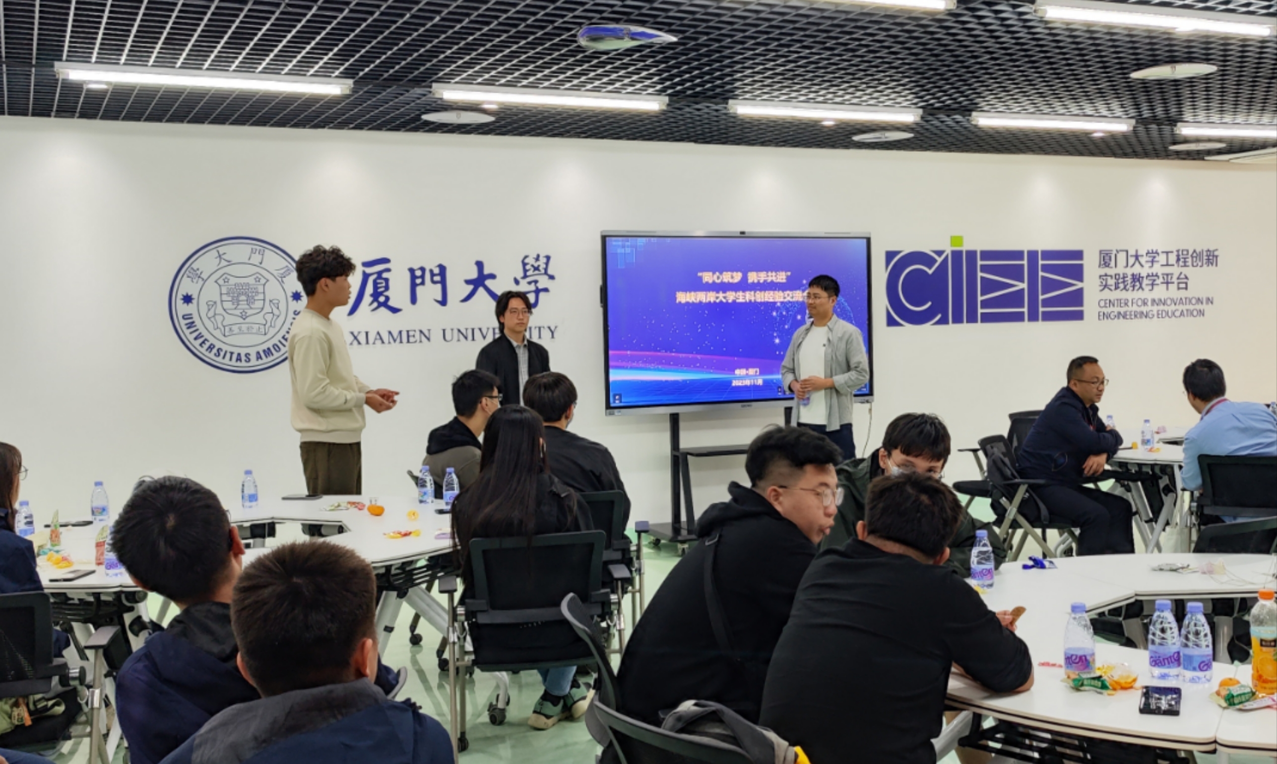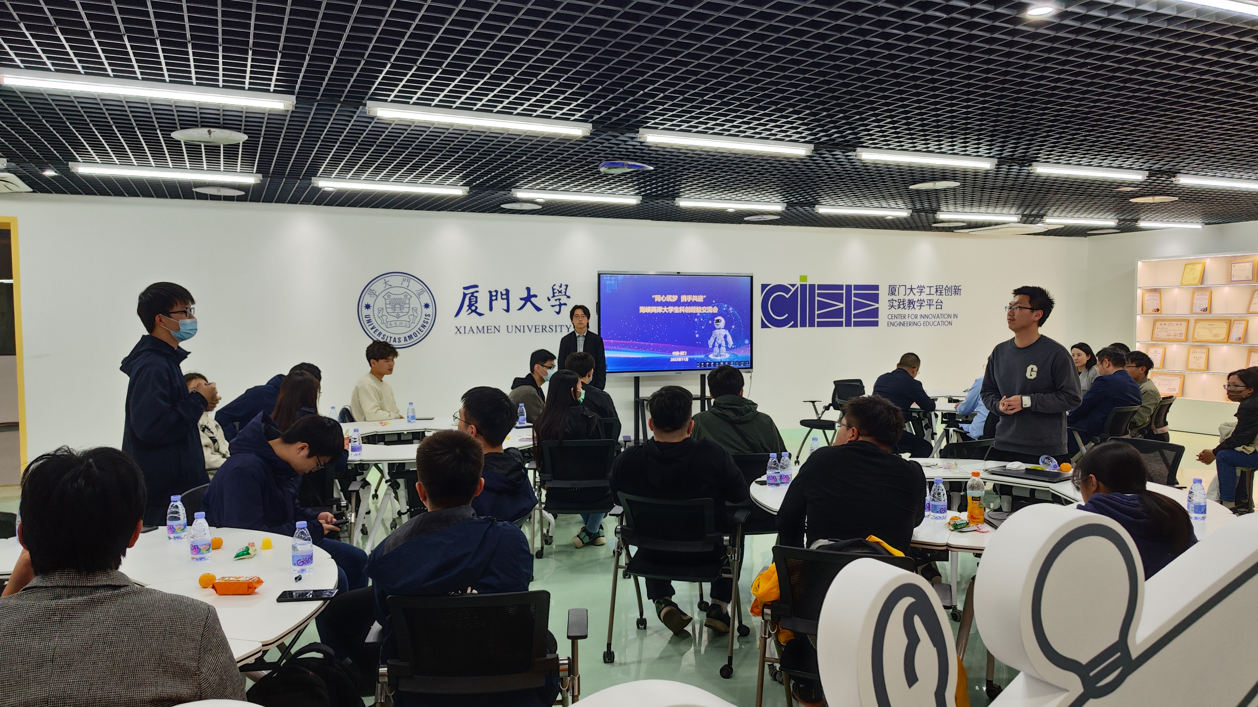 11月25日晚,由航空航天学院承办的“同心筑梦 携手共进”海峡两岸大学生科创经验交流活动在新工科大楼二楼开放空间顺利举行。活动邀请到全国大学生机器人大赛秘书长王旭、深圳拓竹科技有限公司CTO高修峰、大疆创新Robomaster宋帆等相关领域专家作为活动嘉宾,来自厦门大学、金门大学、莆田学院、泉州师范学院的科创团队学生代表40余人参加交流。