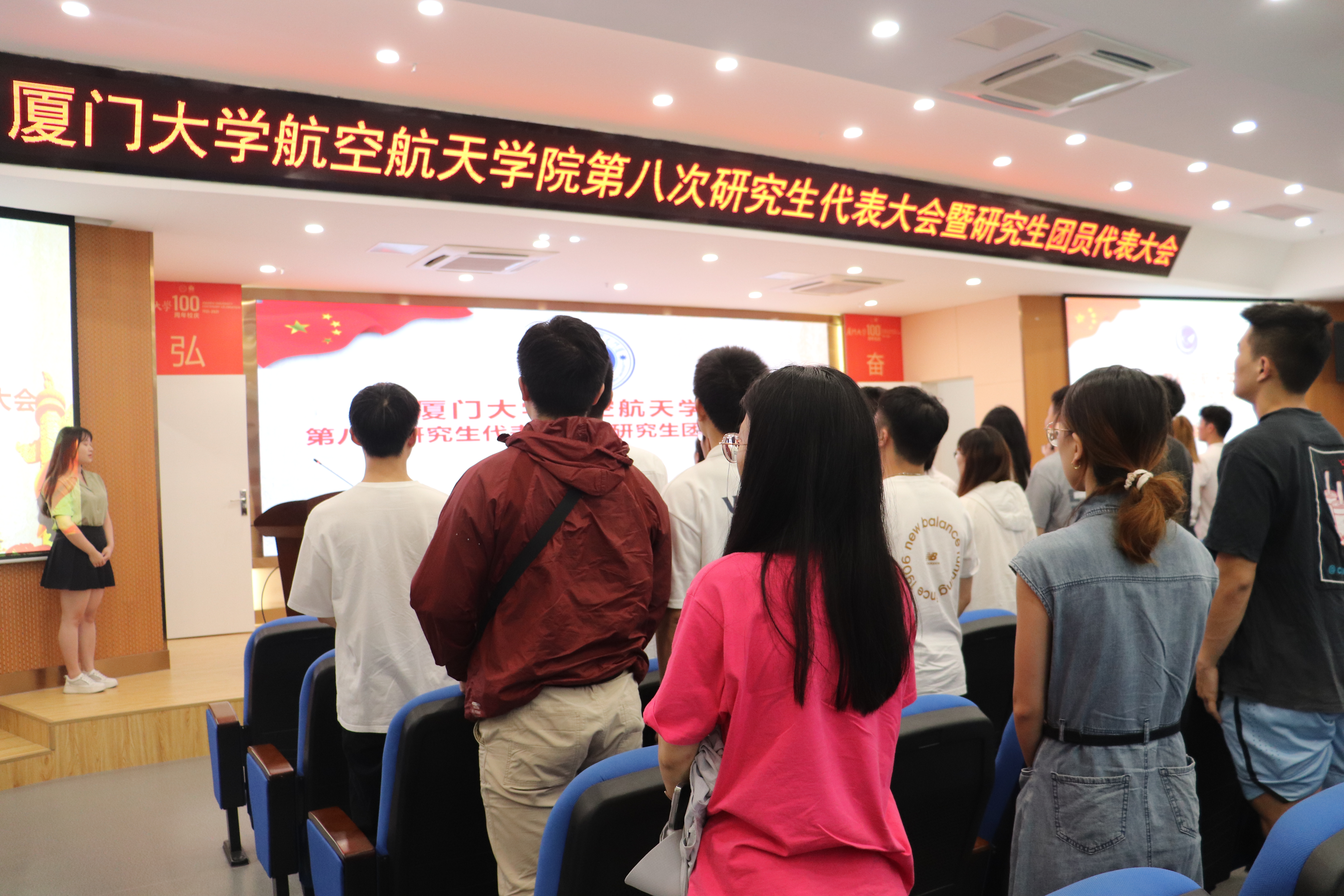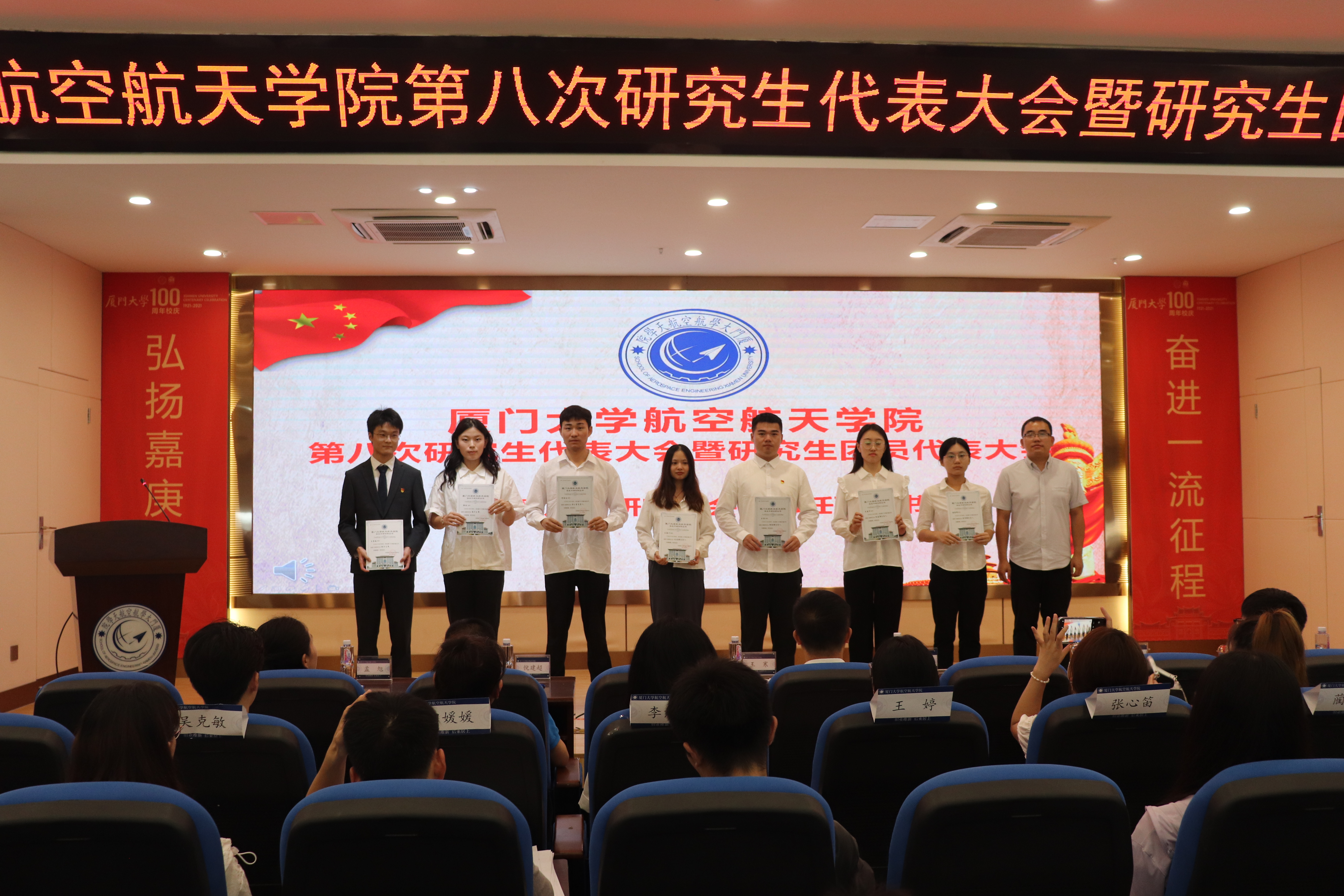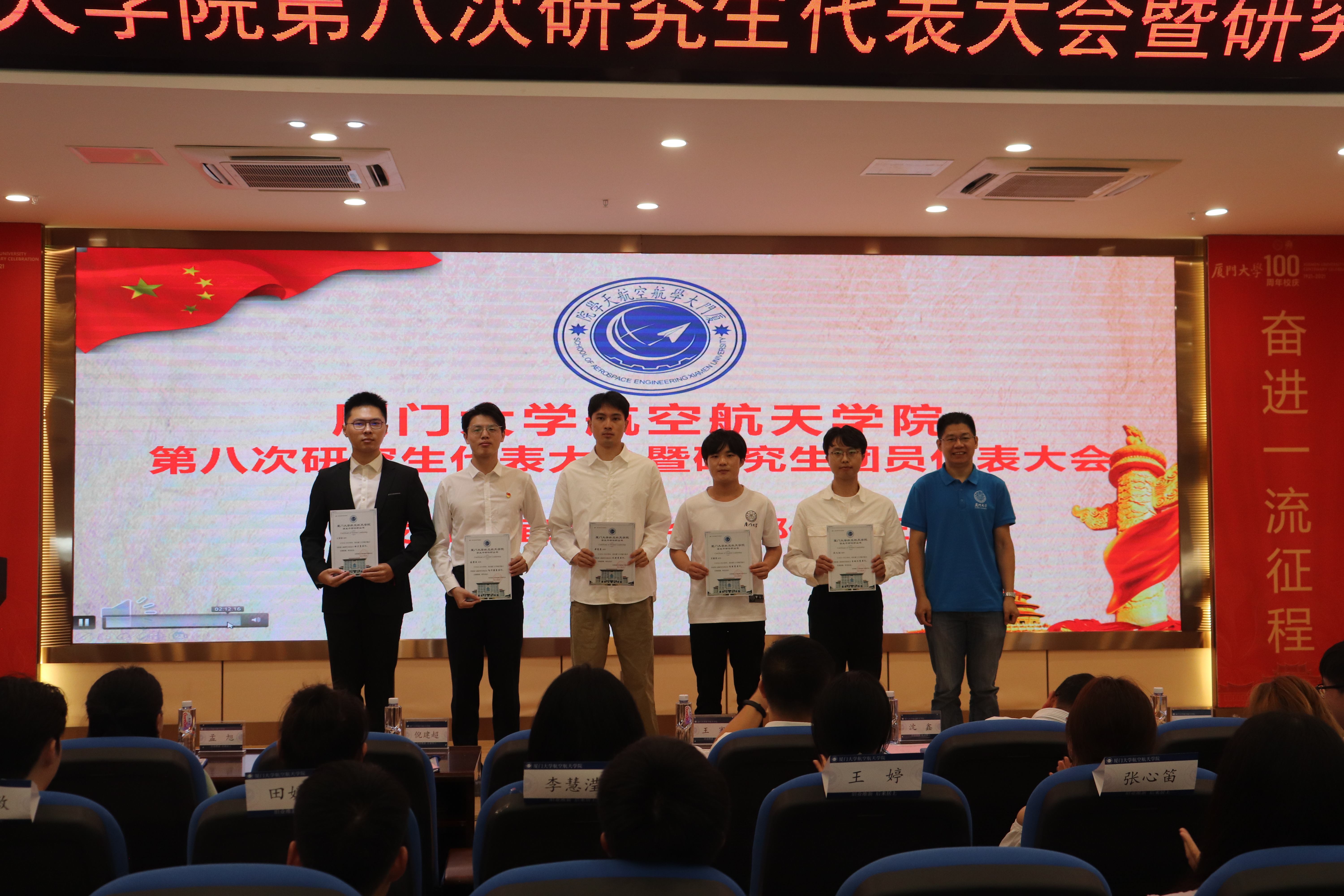 7月21日中午,航空航天学院第八次研究生代表大会暨研究生团员代表大会在学院547报告厅顺利召开。学院党委副书记王寒,团委书记沈鑫,团委副书记倪建超,辅导员孟旭、刘群、董芬,厦门大学第三十三届研究生会主席团代表,兄弟学院研究生会执行主席出席开幕式。航空航天学院研究生各年级学生代表参加会议。
