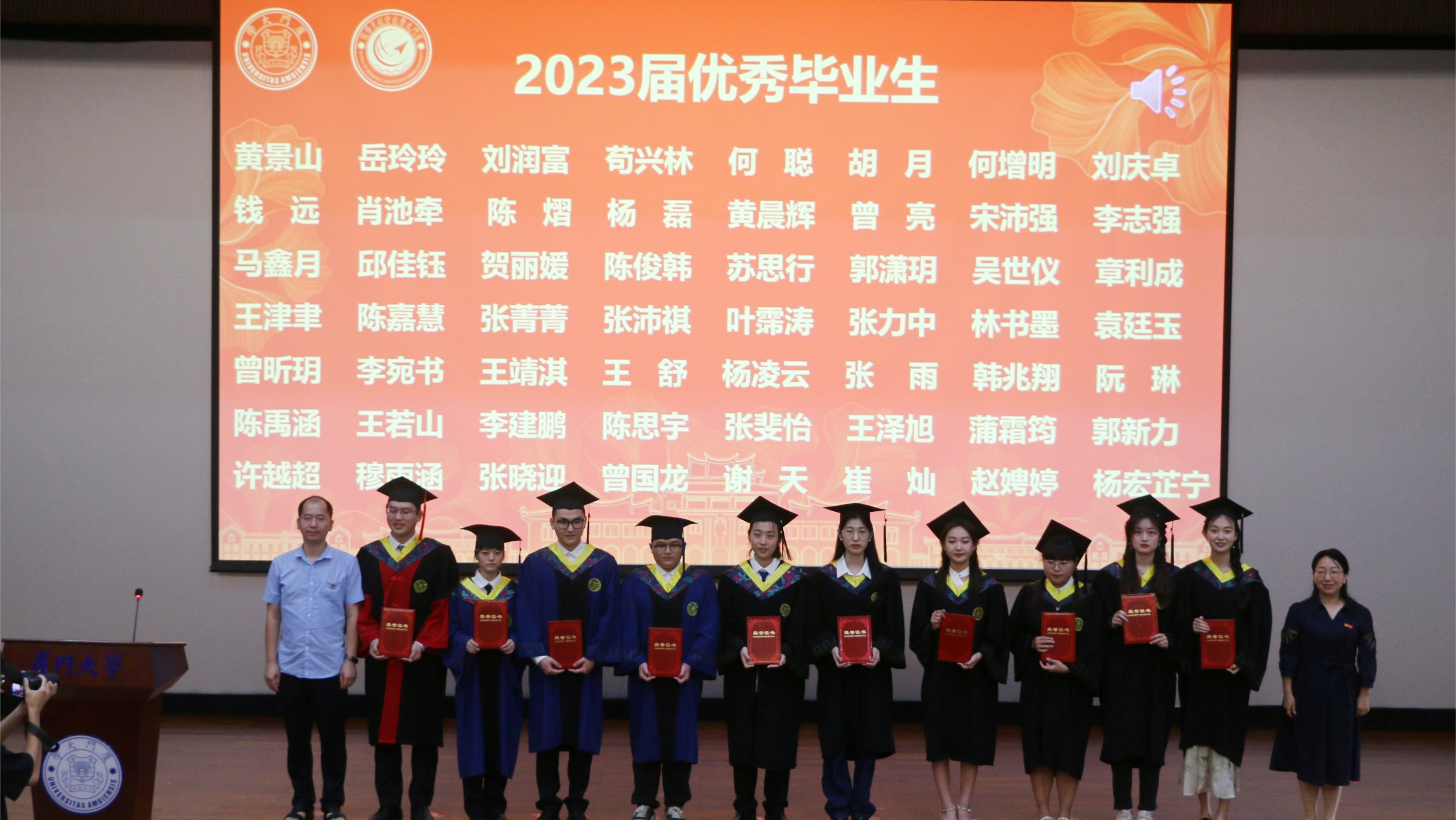 林蔚宣读学院2023届优秀毕业生表彰决定,廖志丹、尤延铖为优秀毕业生颁授荣誉证书。