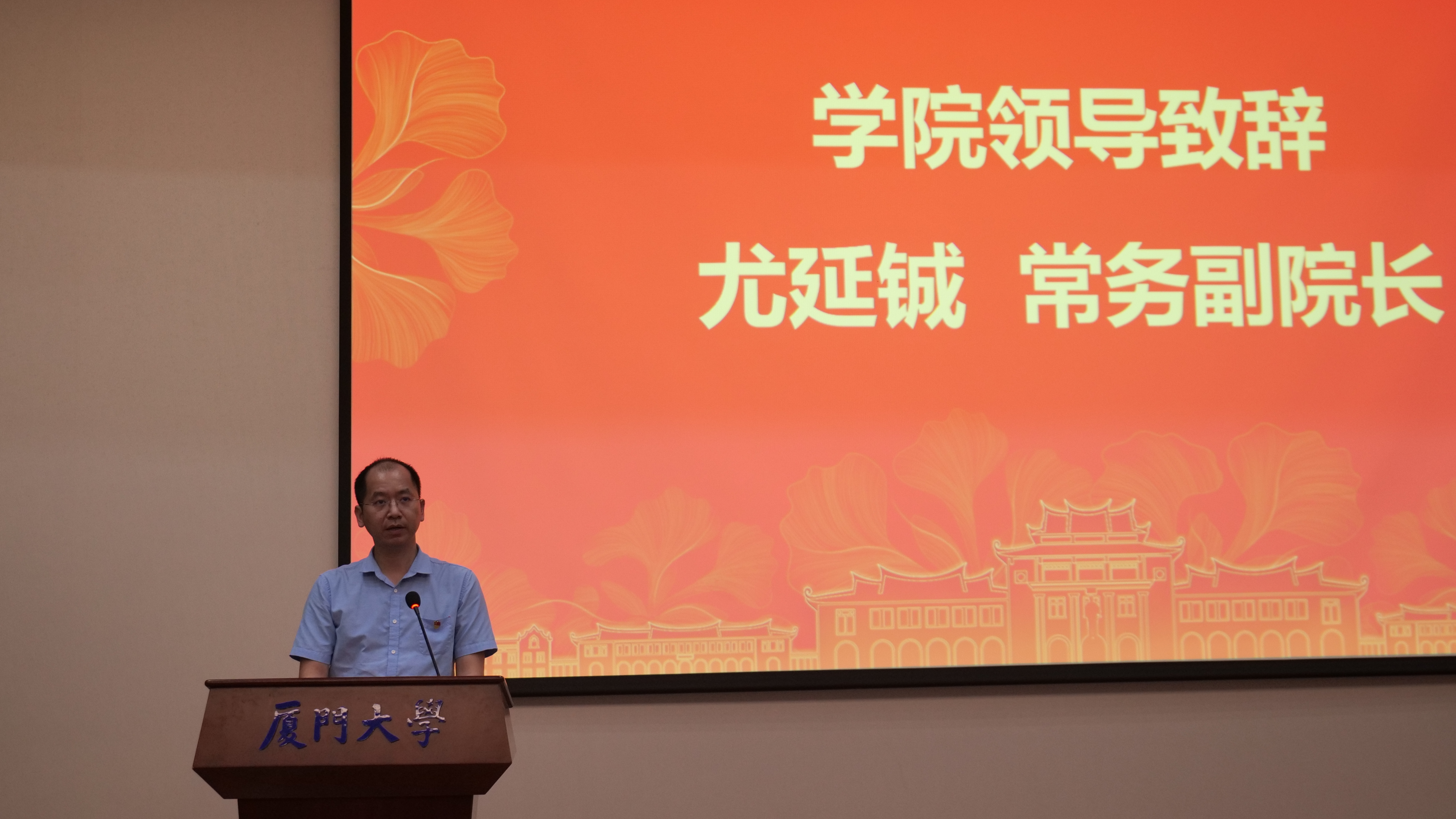 尤延铖代表学院向所有圆满完成学业的毕业生致以最诚挚的祝贺。离别在即,他有三点期望与全体毕业生分享,一是要带上“理想”出发,始终把个人奋斗与祖国的前途、民族的命运紧密相连,不断将所学、所思、所悟践之于行,努力用“青年梦”筑起“中国梦”;二是要带上“担当”出发,在工作中不断提升、锻造自我,积极在担当中历练、在尽责中成长,不负时代重任;三是要带上“奋斗”出发,秉持“自强不息,止于至善”的校训精神,铭记“旧业维新,后来居上”的院训精神,始终勇担空天报国的青春使命,到基层一线和祖国最需要的地方去实践、创新、奉献,努力成为推动科技进步、勇攀科技高峰的厦大人。