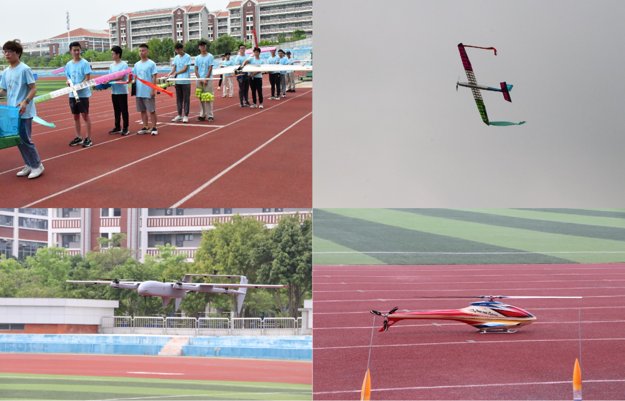 随后,厦门大学航模队、厦门市航协展示了精彩的航模飞行表演。现场不仅有电滑、冲浪者双飞、对地侦查与打击自动起降、涵道机单飞、限时载运飞行、创新载重飞行等表演,还有EV350垂起固定翼动态展示、F3C特技直升机、3D特技固定翼亮相表演。直升机、航模的精彩展示给在场师生带来了一场视听盛宴。表演最后,六位嘉宾共同按下伞降火箭发射按钮,随着火箭腾空而起,活动气氛达到顶点。