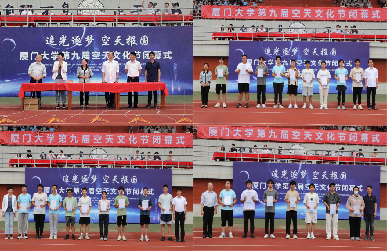 近日,厦门大学第九届空天文化节闭幕式在翔安校区一期田径场举行。航空航天学院党委书记廖志丹、常务副院长尤延铖、校美育与通识教育中心原副主任楼红英、翔安校区办公室主任薛志平、现代教育技术与实践训练中心副主任胡天林、同安一中副校长杨柳峰、厦门市航协党支部书记纪宏毅、航空航天学院党委副书记王寒、飞行器系副主任(主持工作)朱呈祥等出席闭幕式。翔安校区师生及厦门一中、厦门外国语学校、同安一中、厦门市松柏第二小学、厦门翔安东园小学等中小学师生代表参加活动。