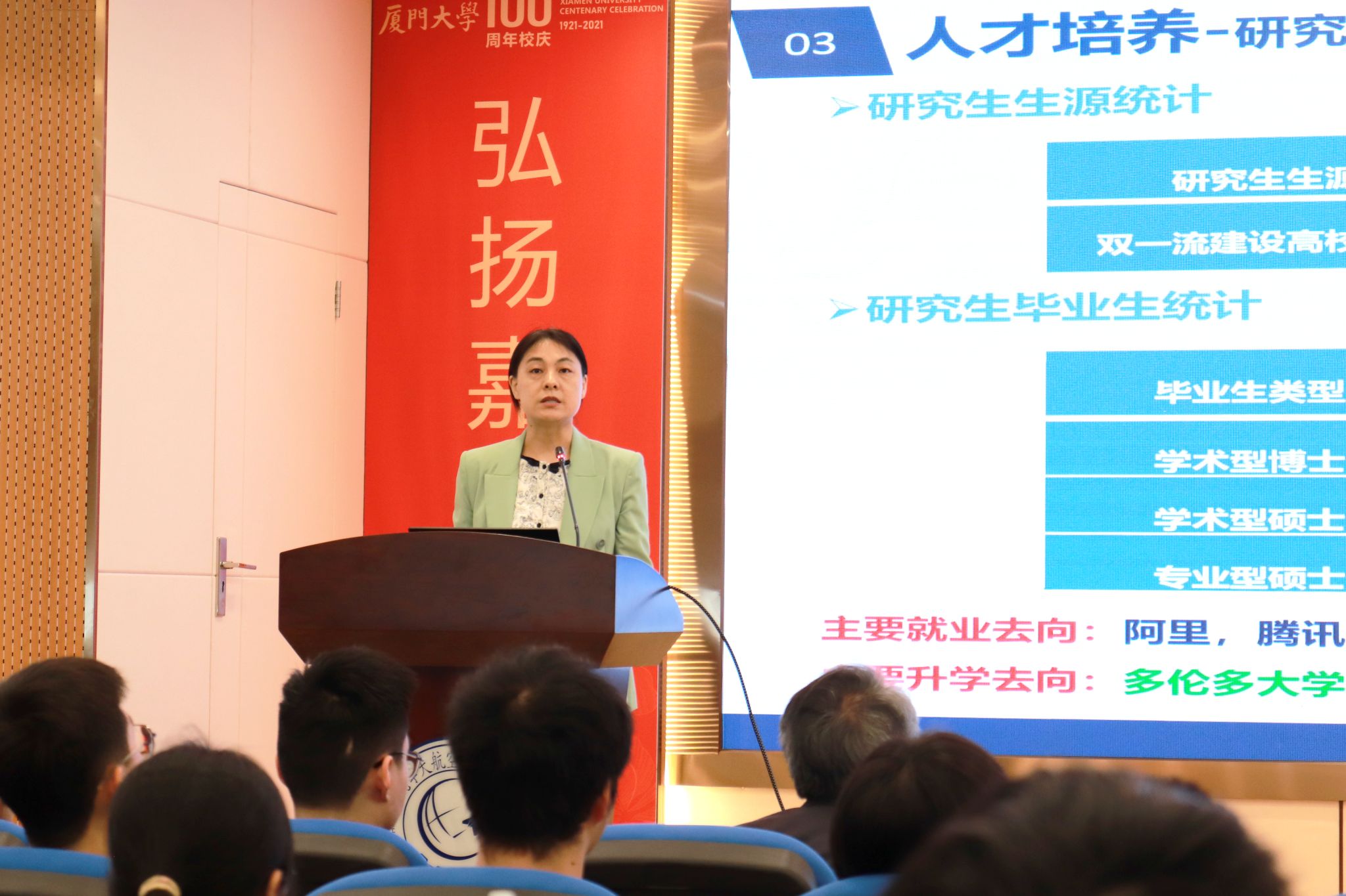 接下来,周绮凤对自动化系有关情况作详细阐述。她指出,自动化系拥有顶尖的师资队伍,人才培养体系完善,研究生生源优质,毕业去向囊括各大高校及知名企业。在科研方面,自动化系涵盖了复杂系统控制与优化、运动体智能装置与系统、智慧健康与生物信息等多个方向。同时,自动化系广泛开展学术交流活动,主办、承办多项全国性学术会议。