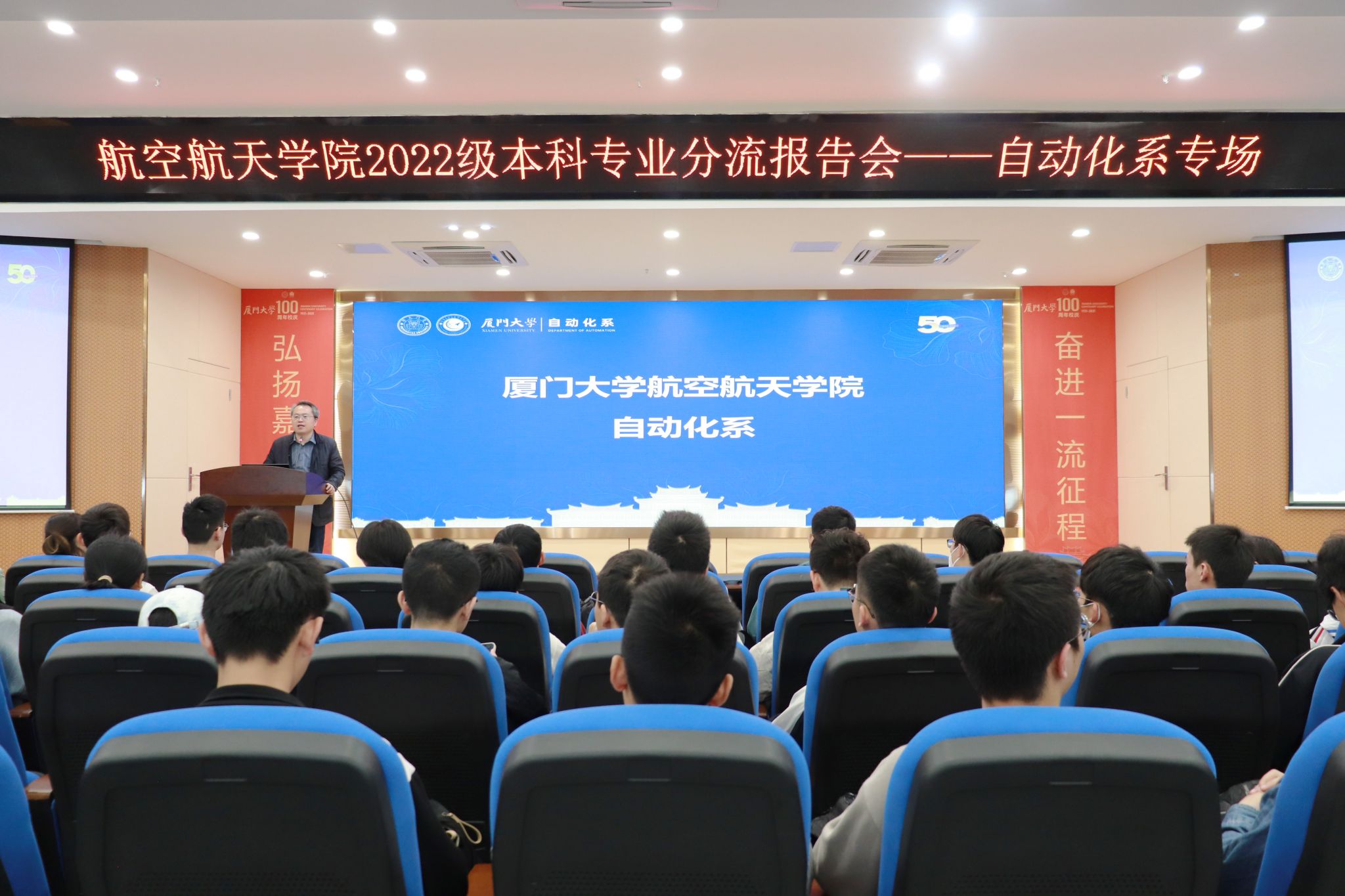 4月12日上午,2022级本科专业分流报告会——自动化系专场在院楼547报告厅成功举办,自动化系主任洪文兴教授、罗林开教授、周绮凤教授、辅导员董芬、自动化系优秀学生代表及2022级本科生参加会议。