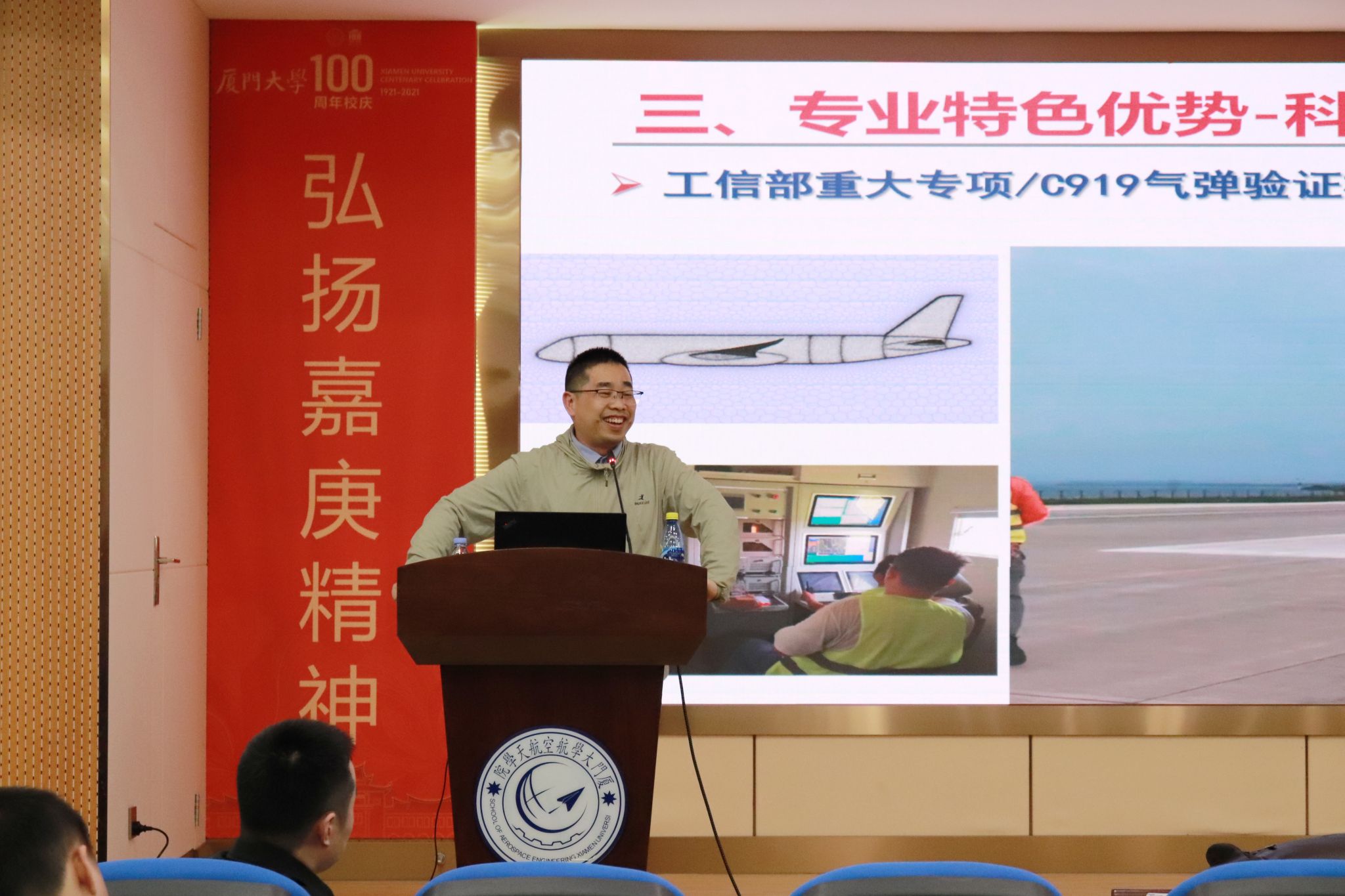 飞行器系吴了泥副教授首先介绍了飞行器系的发展概况,包括发展历程、学科成果、师资力量等。同时,他以“嘉庚一号”飞行器为例,从飞行器设计是一门什么样的专业出发,系统阐述气动设计、飞行控制和结构设计三个主要特色模块的课程内容。