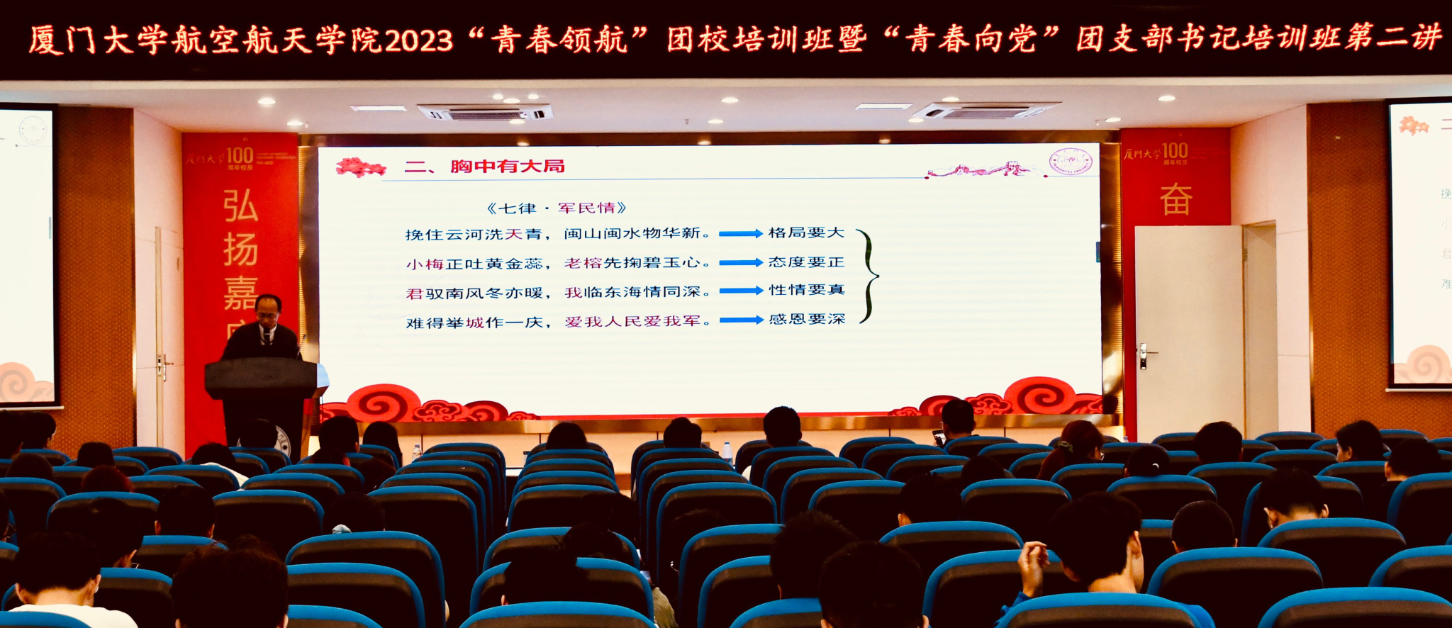 为深入学习宣传贯彻党的二十大精神,提高学生团学骨干的政治素养和能力水平,3月17日中午,航空航天学院在院楼547报告厅举行“青春领航”团校培训班暨“青春向党”团支部书记培训班第二场讲座,校团委副书记、马克思主义学院副教授晏振宇应邀为全体学员作“如何做好一名学生骨干”的专题讲座。