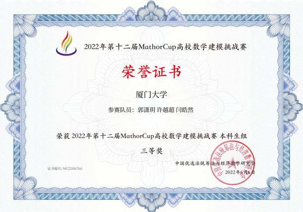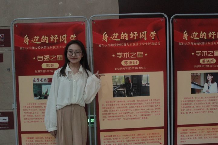 2019年的郭潇玥刚刚步入大学的殿堂,最初来到厦大的她和大多数人一样,也是最普通的一员,于是她开始思索,校园里有这么多的传奇事迹,以后想成为怎样的人。所以从大一开始,在学姐的鼓励下,她便开始了不同的尝试。她积极地与竞赛指导老师联系,获取竞赛的相关信息。尚是大一新生的她,紧抓机遇,满怀憧憬开启了她的精彩竞赛之路:全国大学生物理竞赛,夯实了她的理论;大学生数学建模大赛,强化了量化模型的能力,无人机大赛、机械创新设计大赛,深化了动手实验的能力;各类创新创业类赛事,锻炼了项目设计的能力。