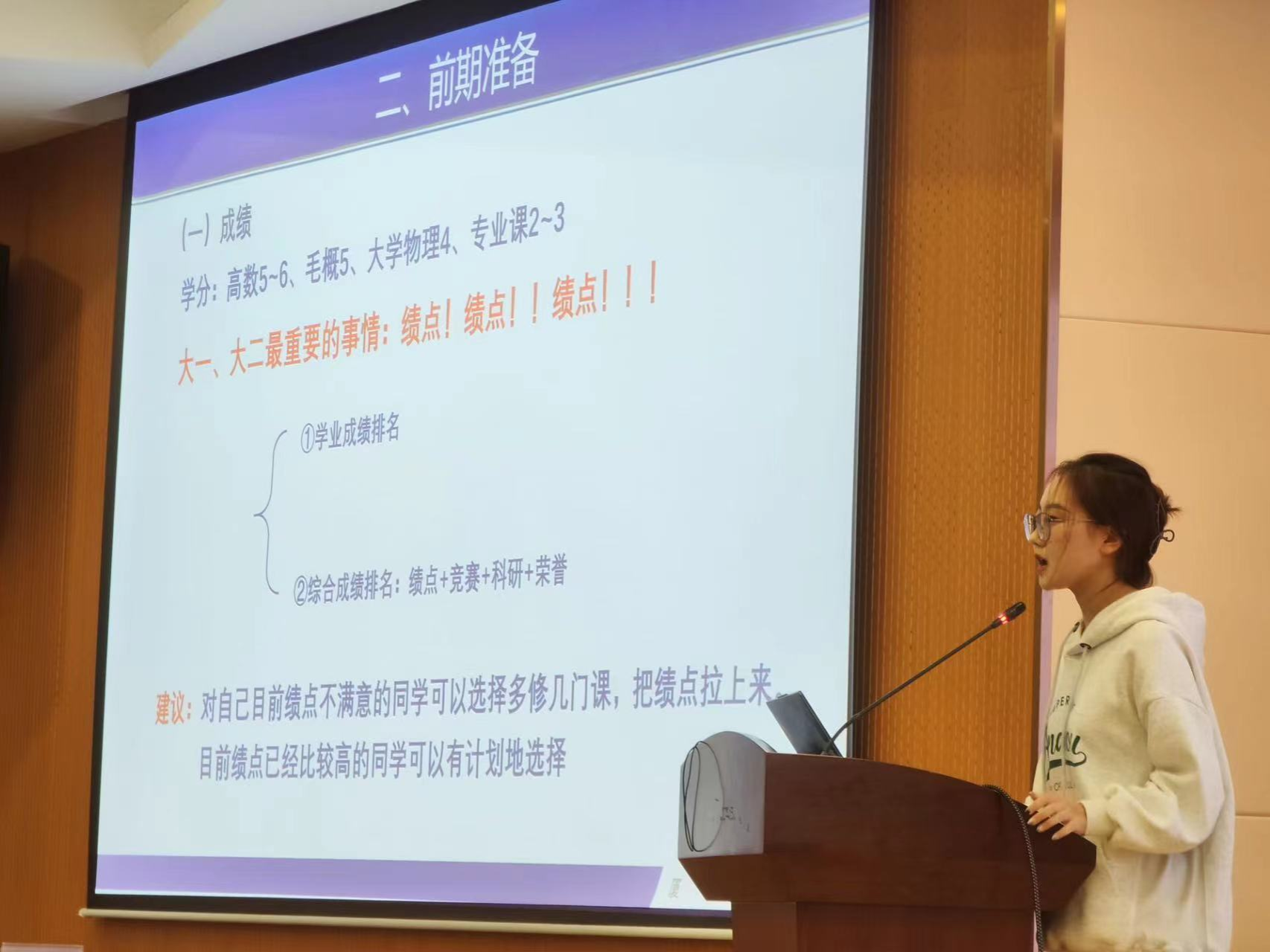 在提升自己的专业成绩的同时,她曾作为仪电系团总支副书记还协助学院做好仪器与电气系本科生学风建设工作,组织开展仪电系学风建设大会、考研交流会,还多次参加朋辈分享会,向学弟学妹们分享学习经验、应试技巧。