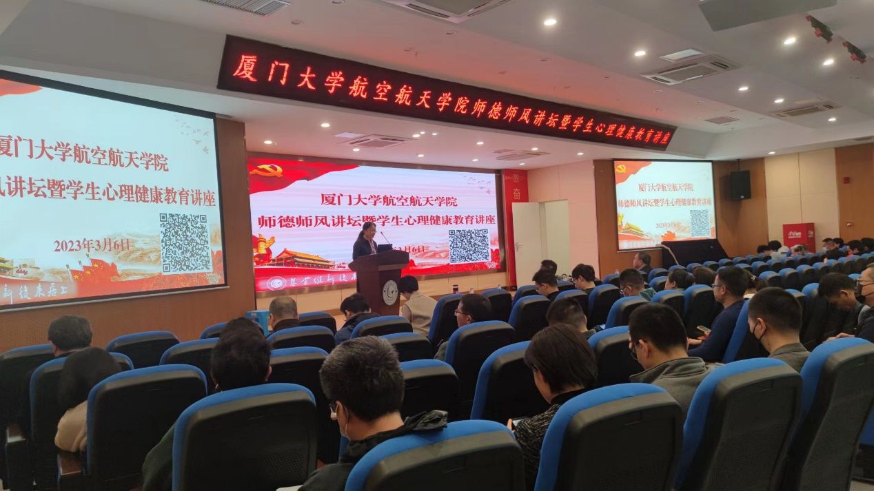 3月6日下午,航空航天学院在学院报告厅举行师德师风讲坛暨学生心理健康教育讲座,邀请厦门大学心理咨询与教育中心主任赖丹凤副教授作题为《大学生心理问题及应对方法》的专题报告。报告会由学院党委副书记林蔚主持,学院全体教职工参加学习。