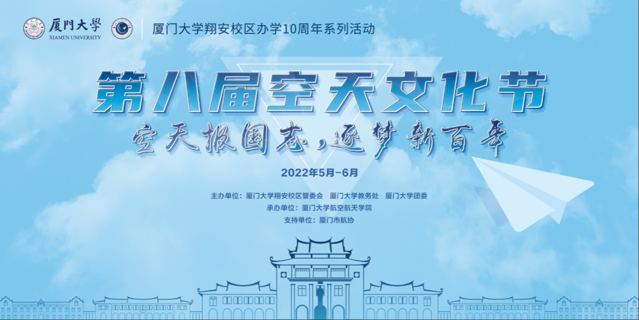 鹏路翱翔,一往无前;飞鸿羽翼,历久而新。值此厦门大学翔安校区办学十周年之际,经过精心筹备,厦门大学第八届空天文化节在5月22日下午于翔安校区一期操场拉开序幕。本届空天文化节由翔安校区管委会、教务处、校团委主办,航空航天学院承办,厦门市航协支持。翔安校区管委会副主任马龙、教务处副处长黄艳萍、翔安校区办公室主任兼学校办公室副主任薛志平、厦门一中教务处副主任纪希弟、厦门市航协党委书记纪宏毅、航空航天学院党委副书记林蔚、自动化系主任洪文兴、教育培训中心副主任(主持工作)刘万山等参加开幕式。