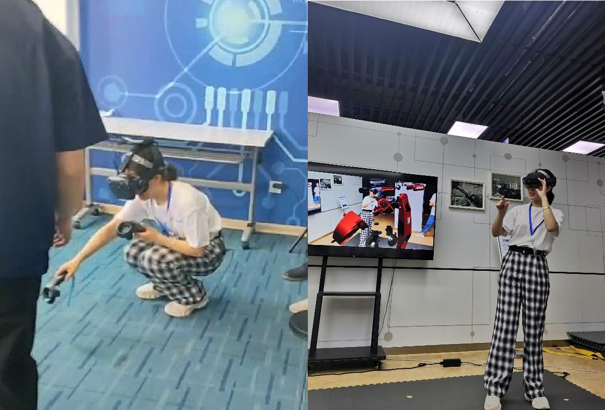 接下来的一周时间内,同学们进入了生产实习的课程环节。同学们首先深度体验了AR、VR技术,戴上VR眼镜进入虚拟世界便捷仔细观察发动机每一个零件的结构以及装配关系,既可以查看部件的爆炸视图,也可以将它们复位查看连接方式;同学们还学习并操作了模拟发动机拆装、溺水救助、火灾救援等多种实例,大家纷纷表示这是一次非常难忘的体验。