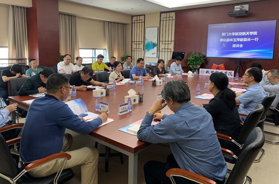 尤延铖对林玉萍在校庆周回院访问表示热烈欢迎,同时指出,这是双方深入贯彻落实习近平总书记给厦门大学100周年贺信精神的一项具体举措,航空航天学院长期以来致力于服务地方经济和教育发展,为提升服务区域发展贡献力量,希望通过此次交流打开学院与德化地方政府合作的序幕,今后双方将在加强产学研合作、构建联合育人平台、共建专业技术人才培养培训基地、提供智能化自动化技术服务等领域,开展广泛而深入的合作。会后,尤延铖代表学院向林玉萍赠送校庆和院庆的纪念品。