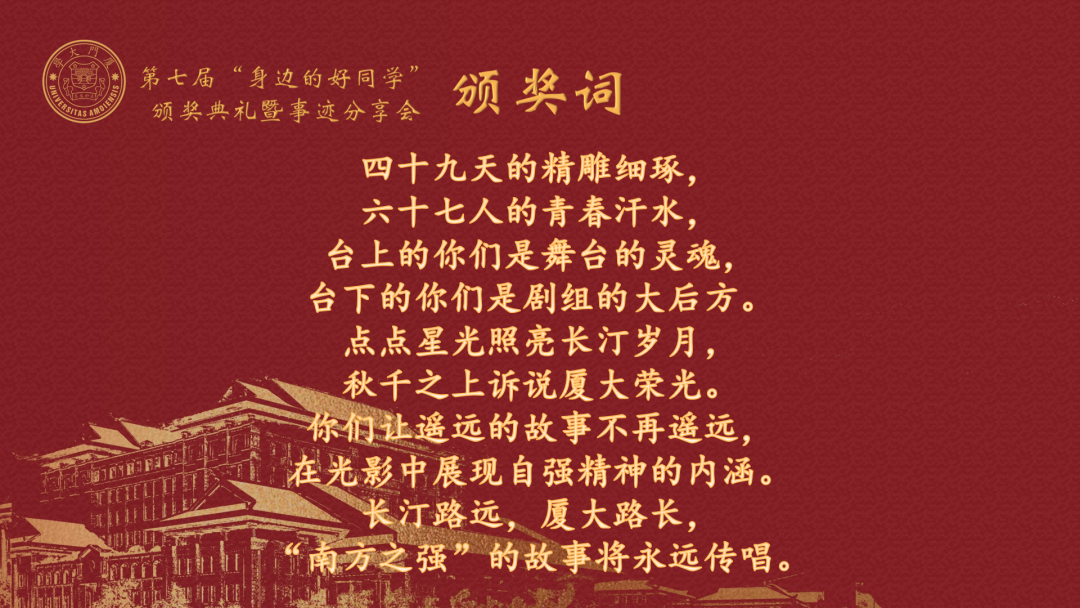 2020年12月7日晚“身边的好同学” 厦门大学翔安校区第七届优秀大学生评选活动颁奖典礼暨事迹分享会圆满落幕!