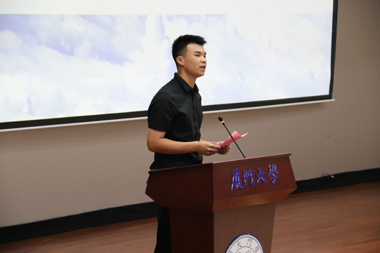 紧接着,厦门大学经济学院张兴祥教授为新生解读厦门大学“四种精神”——陈嘉庚先生的爱国精神,罗扬才烈士的革命精神,抗战时期厦大内迁长汀艰苦办学的自强精神,以王亚南校长、陈景润教授为代表的科学精神。