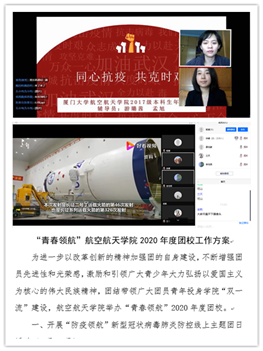 随着国内外疫情局势的不断变化,抗击疫情到了最吃紧的关键时期。航空航天学院党委秉承“疫情就是命令、防控就是责任”的宗旨,开展“防疫领航”系列工作。成立在鄂先锋、留校学生党支部,党员冲锋在前,发挥示范引领作用。成立青年突击预备队,引导团员青年在做好安全防护的前提下积极服务家乡社区防疫工作,诠释着当代青年的责任。视频召开“不忘初心、牢记使命”主题教育总结大会、2019年度党支部书记述职大会,总结过往、重温使命,展望未来、坚定前行。学院团委启动“青春领航”团校,开展“同心抗疫、共克时艰”团员主题教育,组织聚焦“一箭四星”发射等“空天报国”专题的青年微团课 ,“学雷锋日”志愿服务项目征集与指导等主题团日活动,激发学院团员青年的意识与担当。思政情境在变,但信念不变。