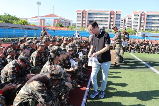 在这时,领导和班主任们亲自送来了奶茶,给辛苦训练的同学们送来温暖与问候。
