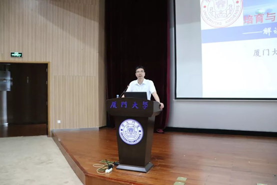 张兴祥副教授不仅从人文精神的角度分析了厦门大学的文化氛围,也从文化价值方面分析了陈嘉庚校主亲手设计的嘉庚式建筑。他声情并茂,从陈校主仗义兴学,创办厦门大学开始,到抗日战争中风雨飘摇毁家纾难,以新时代厦门大学的变革作结,讲述了厦门大学的前世今生。当听到汪精卫差点被选为厦门大学校长,同学们大呼庆幸;当听到萨本栋校长因为恪守校规被冠以“杀不动”的“美誉”,大家会心地笑出了声。