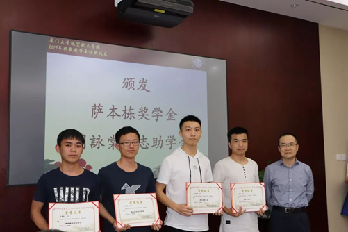 随后,由党委副书记郑镇锋宣读萨本栋奖学金、蔡文种奖学金等奖教奖学金获奖名单,共计有115名老师学生获奖。各位捐资代表、院系领导为获奖者颁发奖状并合影留念。安瑞捷、王康平等8位领导嘉宾为王晓光老师、陈亮同学等25名获奖代表颁发了共计11项奖教奖学金。