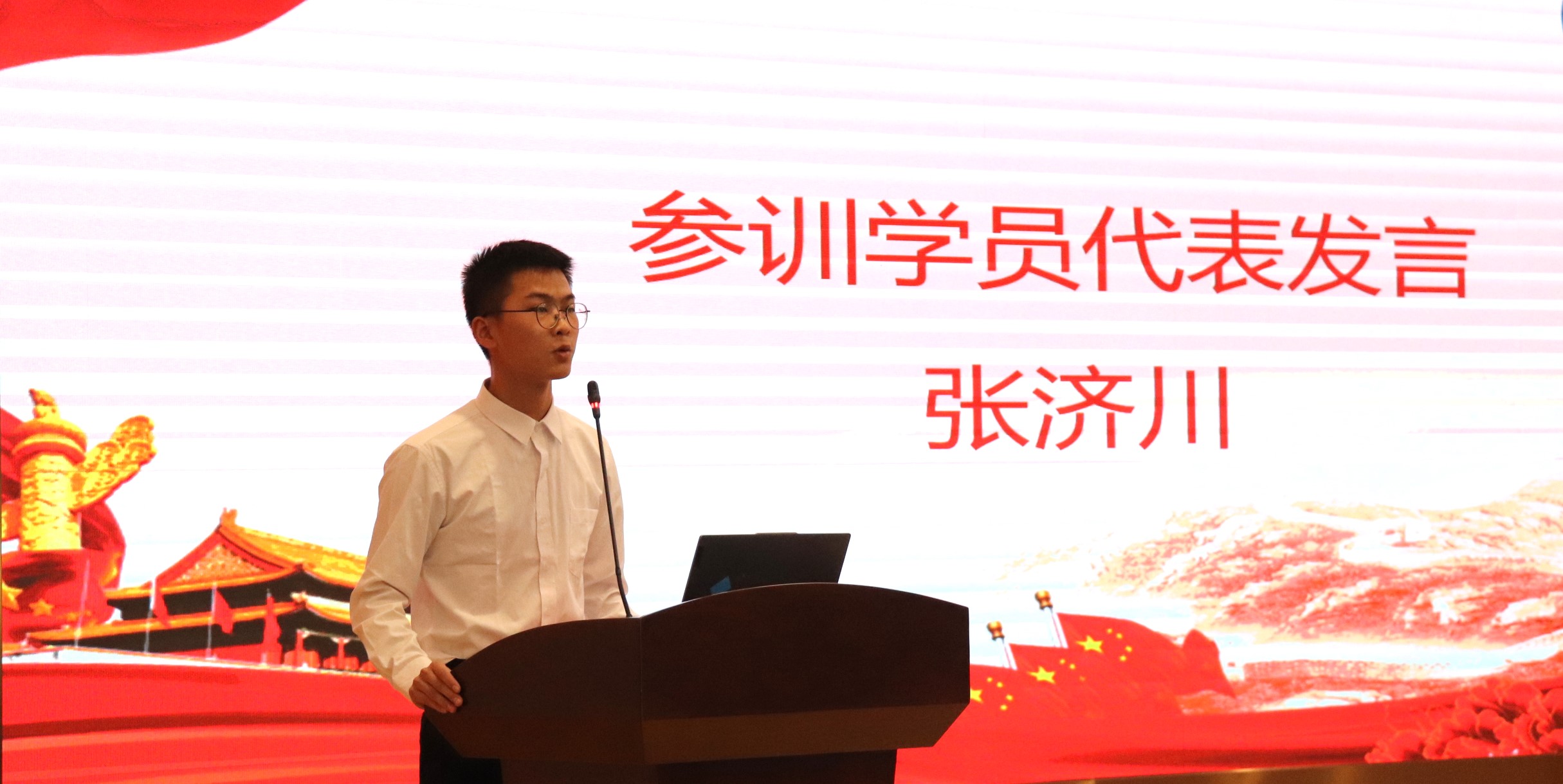 参训学员代表、2024级本科生张济川发言。他谈到,厦大优良的学术作风和崇高的精神内核是鼓励他来此不断追逐梦想的能量源泉,希望能和同学们一道在这片梦想之地实现人生目标,孜孜不倦、如饥似渴地学习,在攀登知识高峰中追求卓越,在肩负时代重任时行胜于言。