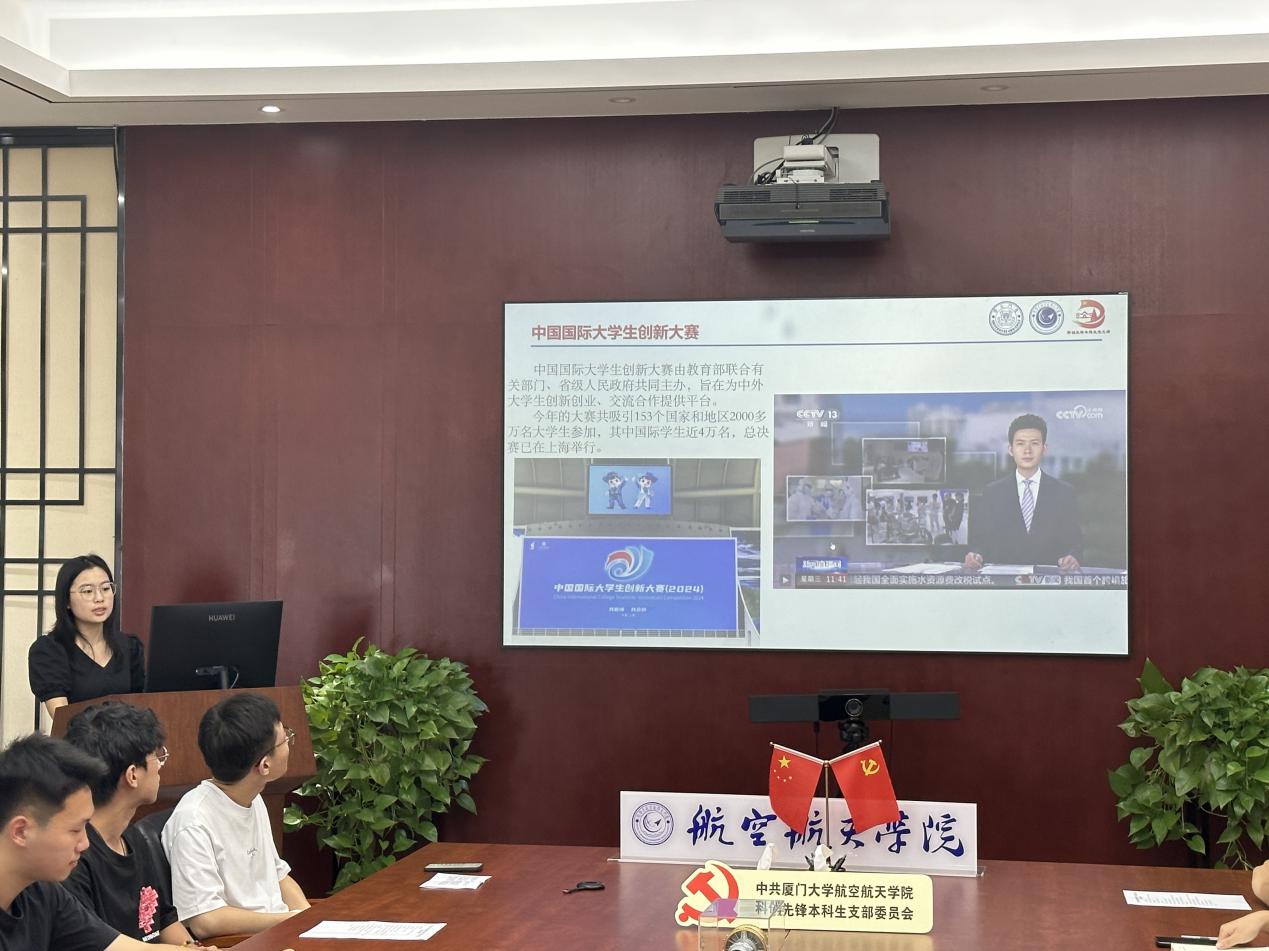 近日,习近平总书记给中国国际大学生创新大赛参赛学生代表回信,对他们予以亲切勉励并提出殷切希望。10月18日,航空航天学院科创先锋本科生党支部、团支部组织学院科创团队、科创社团学习习近平总书记重要回信精神,并邀请本次大赛参赛团队学生代表分享感悟。学院党委副书记林蔚,团委书记郭江淮参加活动。