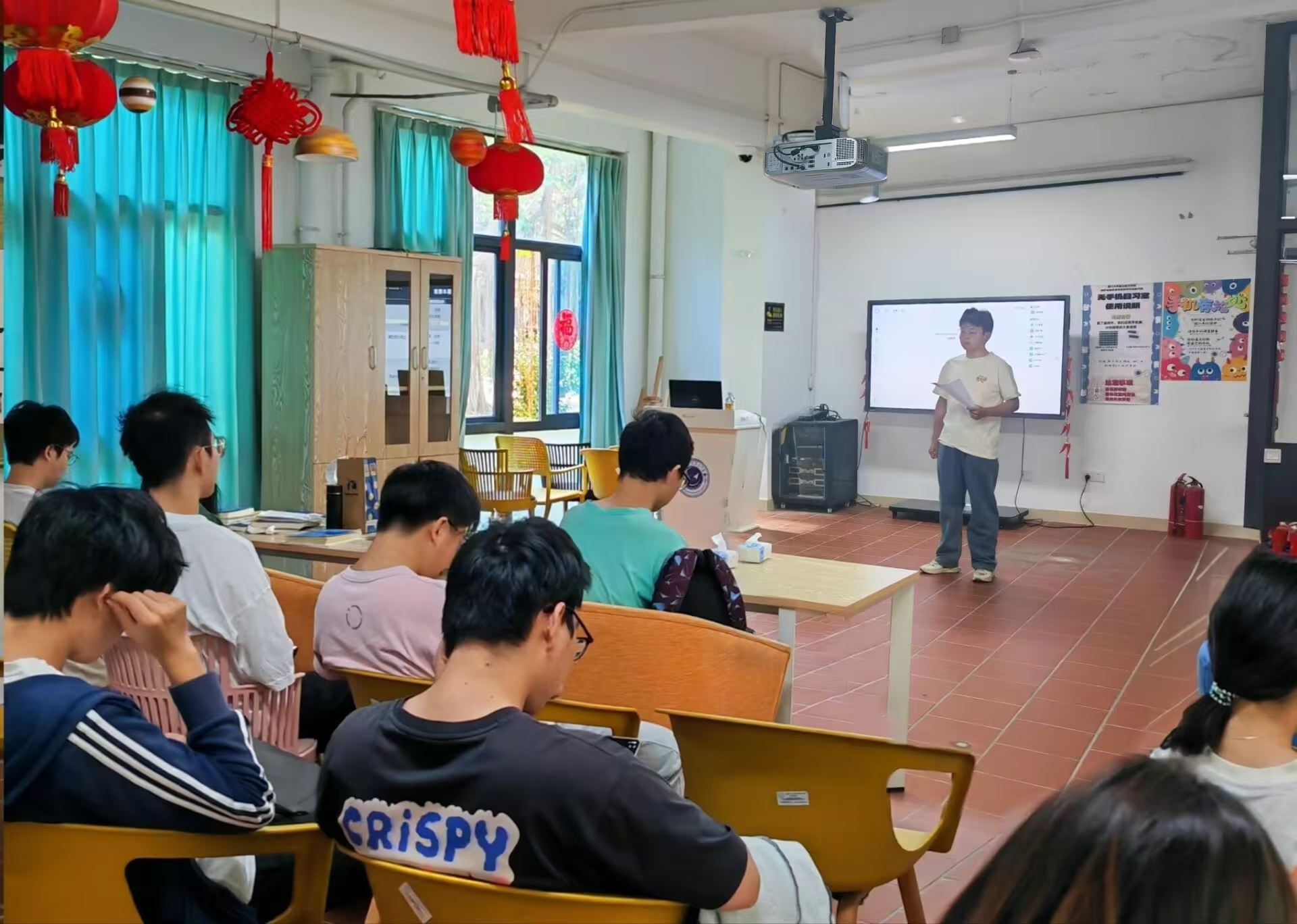 听完实时讲座,一站式“博学”先锋工作组在映雪五现场组织开展了交流分享活动,邀请毕业班已落实就业单位的同学、参与多场面试的同学,如柯淇文、王晓杰、林超宇等参与交流。同学们纷纷表示这样的互动讨论能帮助大家更好地理解和应用讲座中的建议。